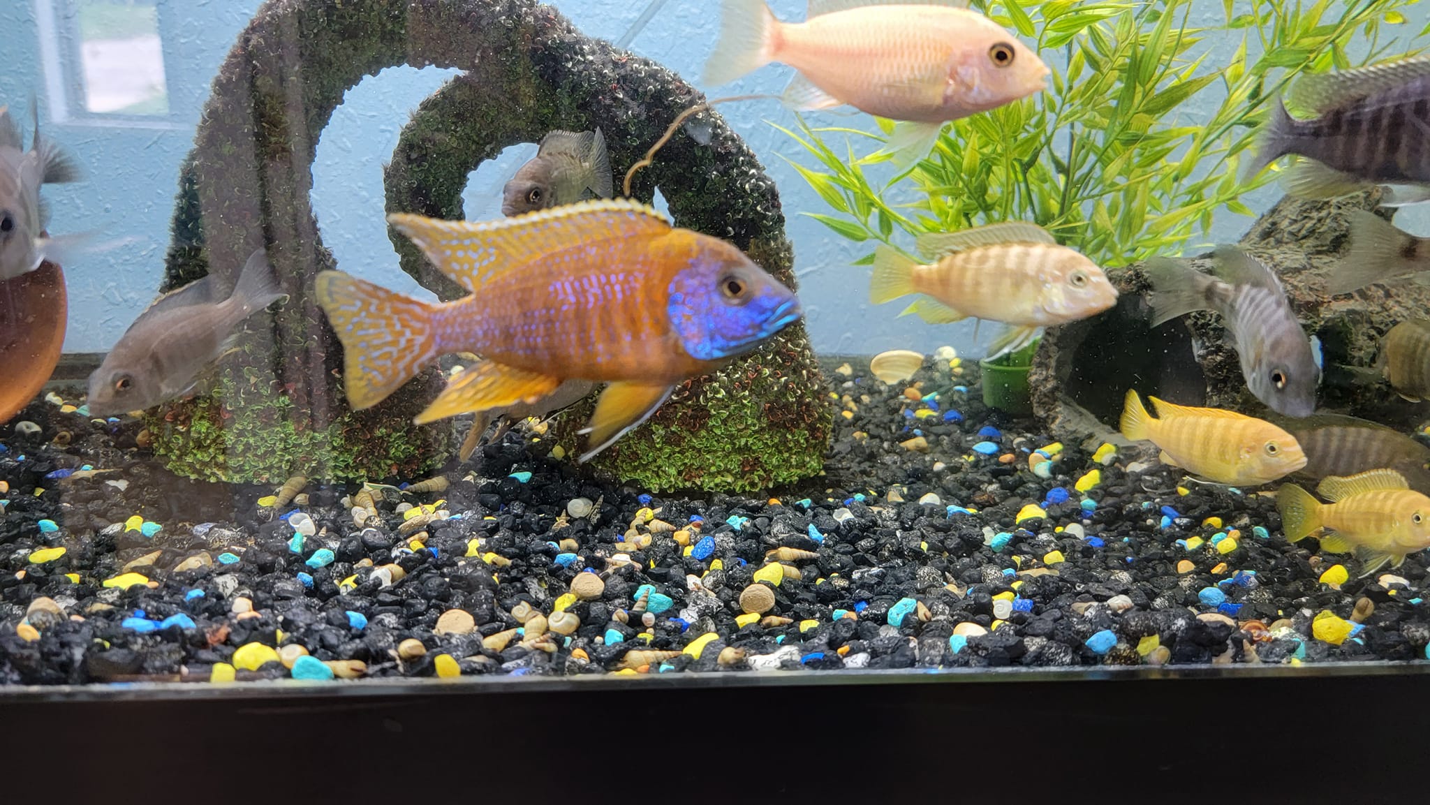 Stunning fish. Clearly well taken care of. There's no proper fish store where we live so we drove out here looking for some betta tank supplies like wood and plants.
