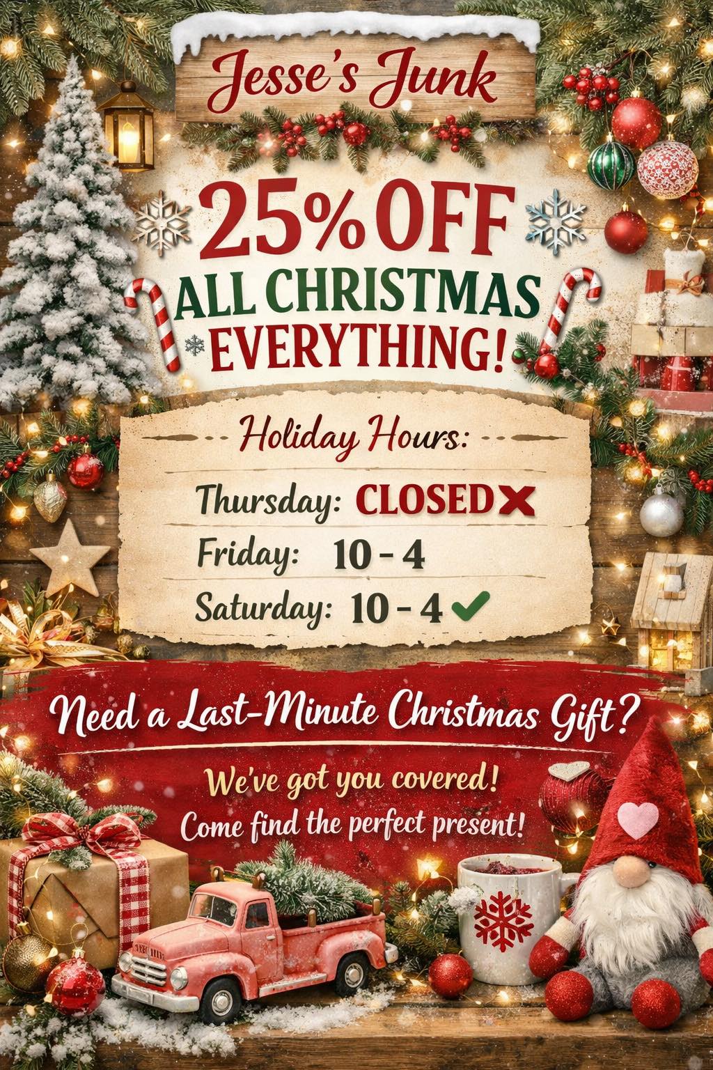 We love Jesse’s Junk!! They have an awesome selection, great prices and the family that owns the store are wonderful! Great place for all kinds of great finds!! Highly recommend!!