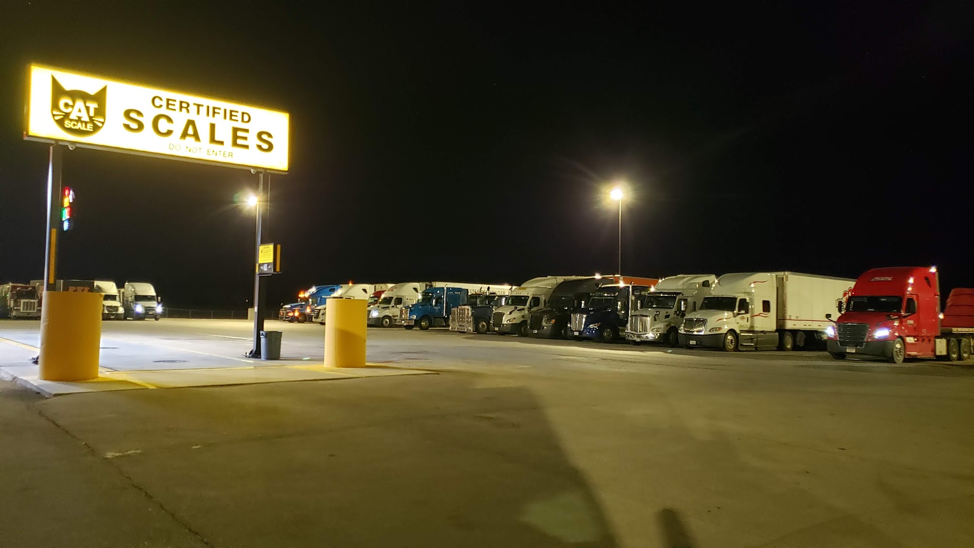 Small truck stop with a large parking area. It was very quiet and peaceful to sleep.