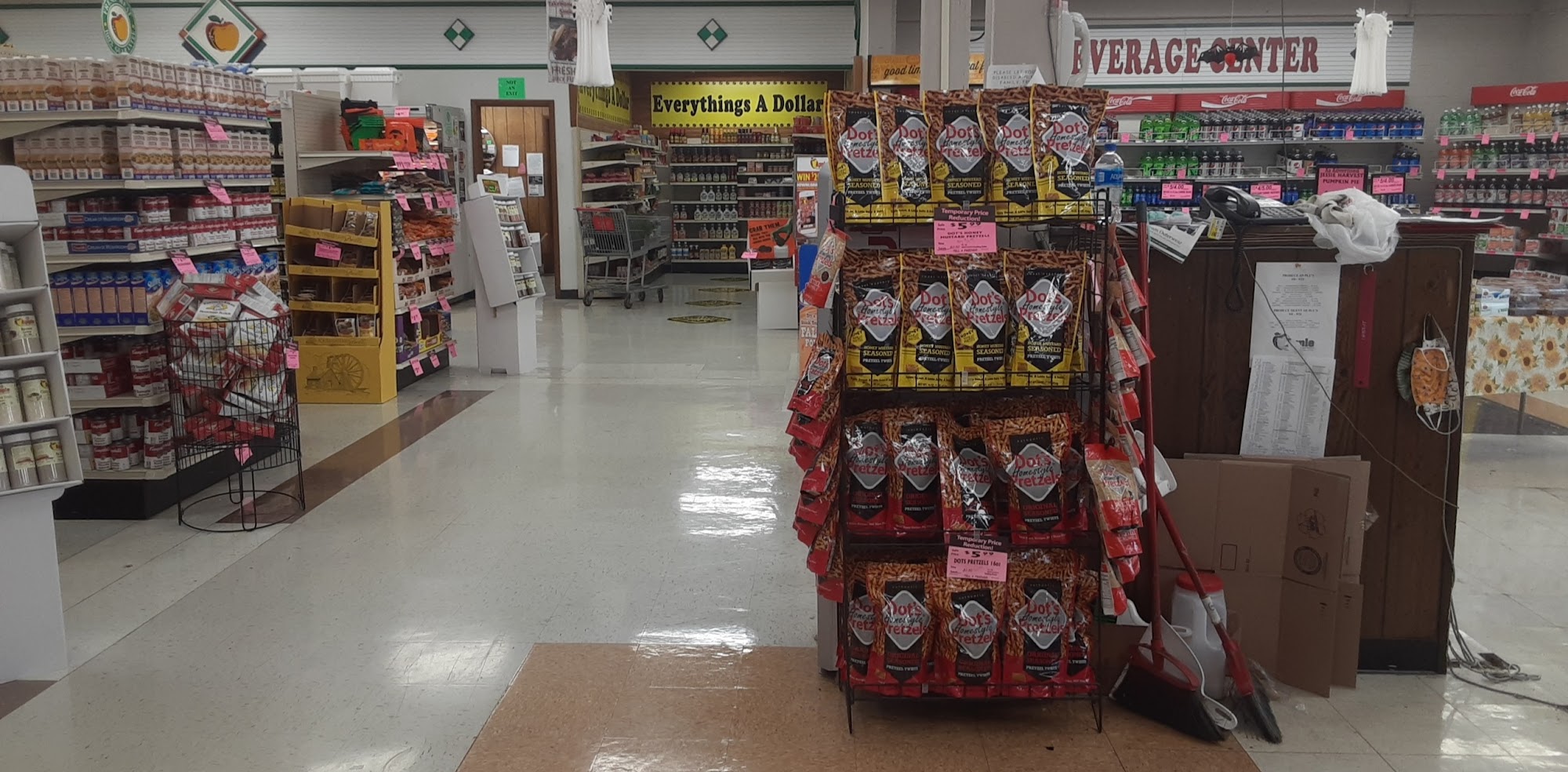 Apple Market is a small-town grocery store that provides a convenient shopping option for locals. The store is very clean and offers a little bit of everything, including seasonal items like mums, pumpkins, and hay bales. It features a meat section with good sales and friendly butchers who are helpful and kind. The fried chicken in the deli is well-liked, and there is a FedEx drop box for added convenience. Outside, there's a smokehouse for meats on special occasions, and during October 2023, they sell seasonal items such as mums, pumpkins, and hay bales. The store has a nostalgic, mom-and-pop vibe with old-fashioned decor, which many customers appreciate. Staff members are generally helpful, though some note that prices are starting to rise and can be higher compared to larger stores. Despite this, the store remains a favorite for the community, serving as a reliable place to find essentials and enjoy a friendly atmosphere. Overall, Apple Market is a valued part of the small town, offering good service and a sense of community.