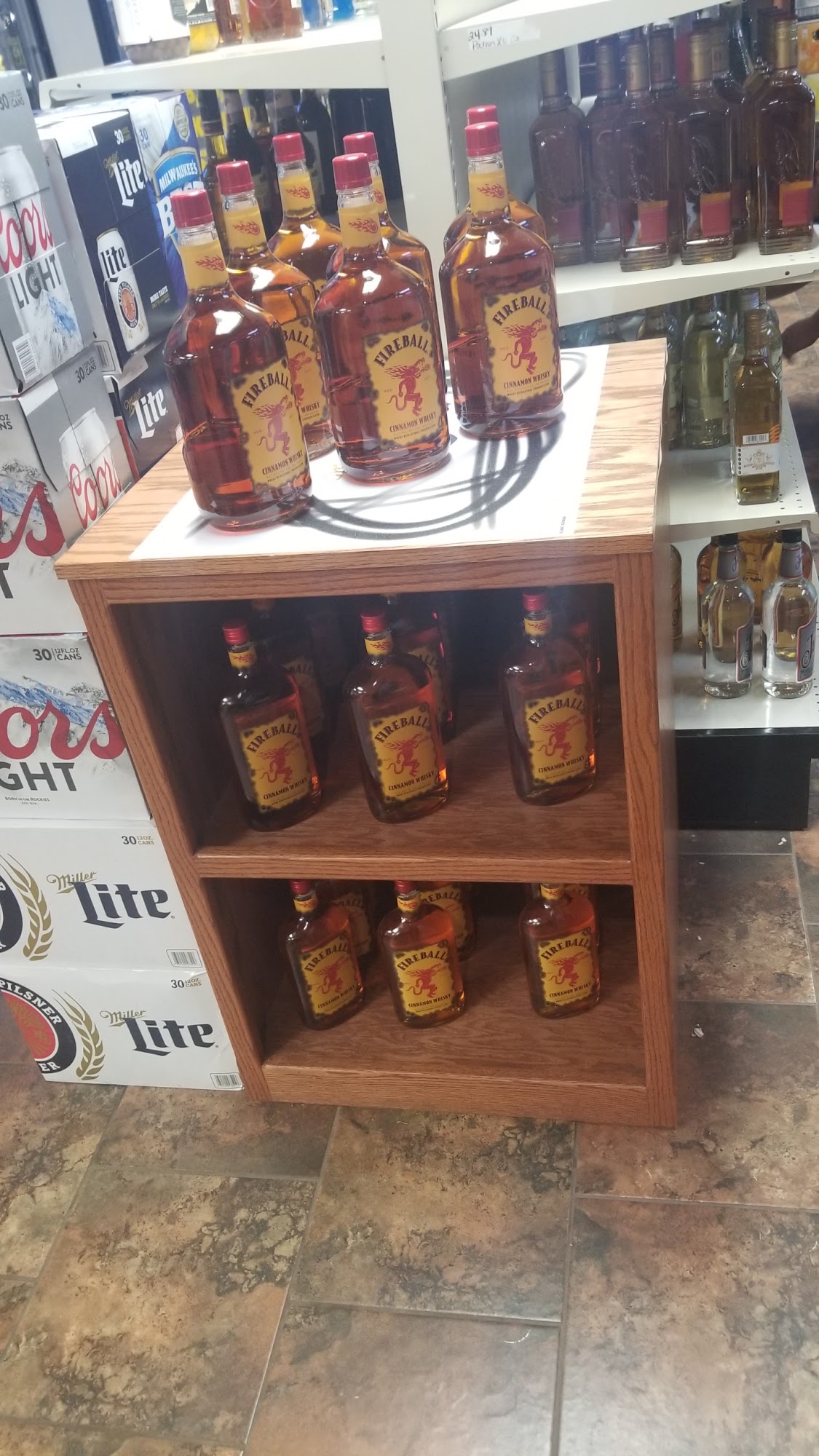 Limited selection of spirits and wine. Plenty of beer in the walk in cooler. I spotted a few high-end brands but you'll find a variety of price points.