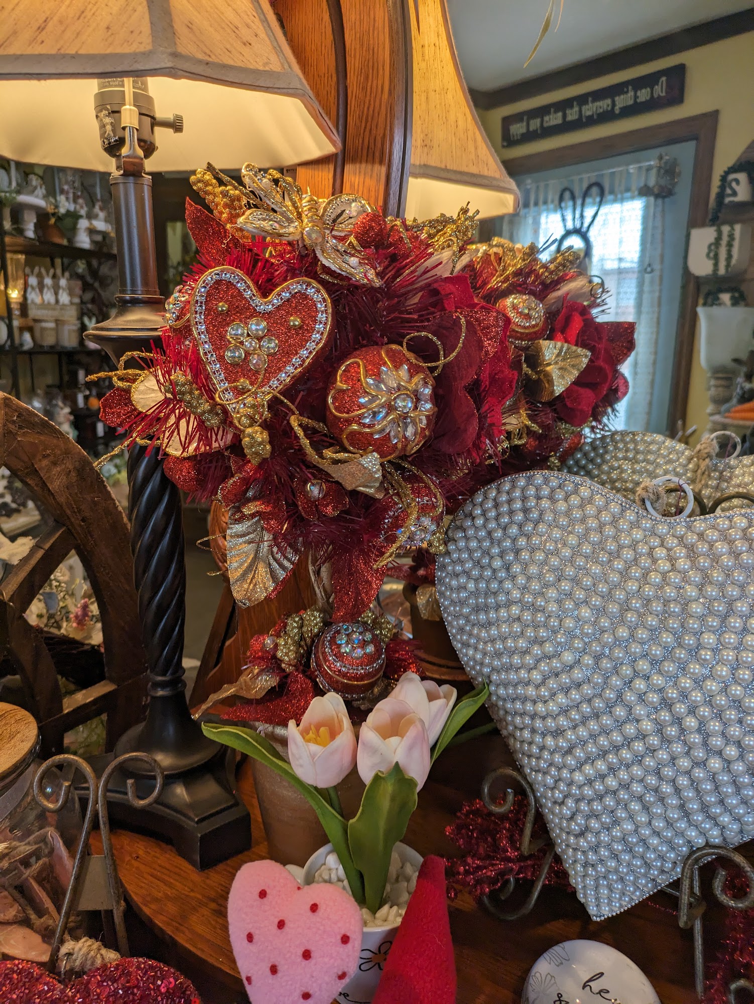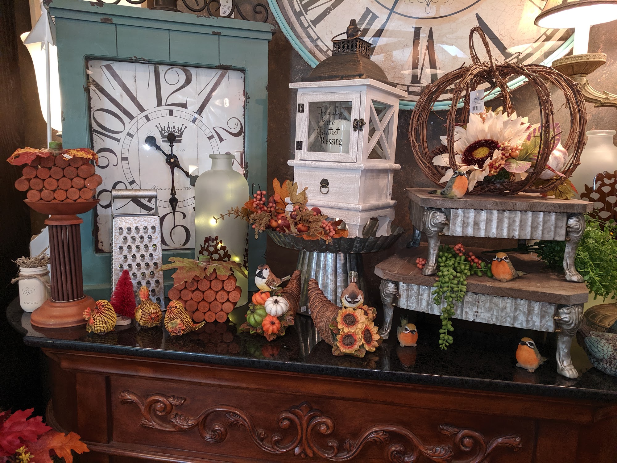 Small quaint shop with plenty to pick from.If you're looking for something seasonal as a center piece or for decoration then they probably have it.They also sell sought after antiques and vintage items.They have more items available for sale if you go to the back as well.