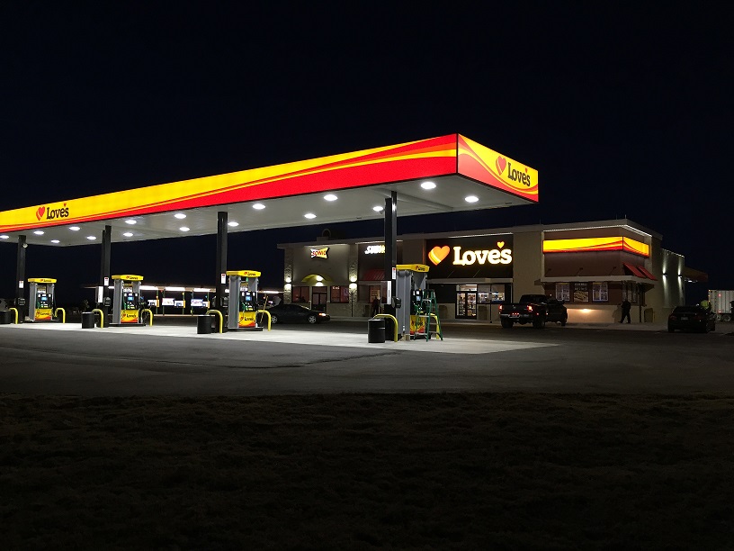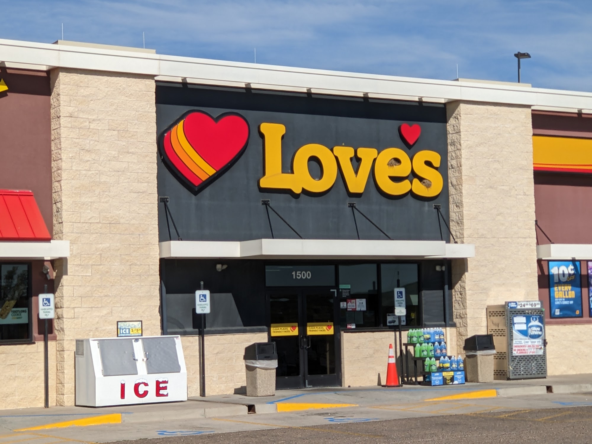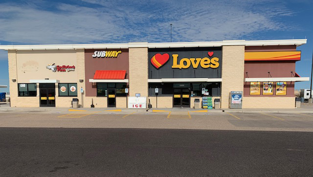 Love's Travel Stop is conveniently located off the freeway and offers friendly service, a modern store, and clean facilities. It provides diesel fuel, gas, food, and supplies for travelers, with a good selection of snacks and beverages at good prices. The pizza is noted as fantastic and well-prepared. However, a significant drawback is that both the cellular service and WiFi are reported to be very poor, which may be inconvenient for those needing connectivity. Overall, it is described as a nice location with professional hospitality.
