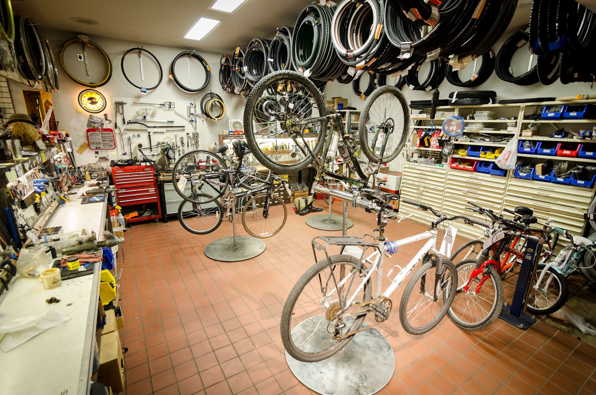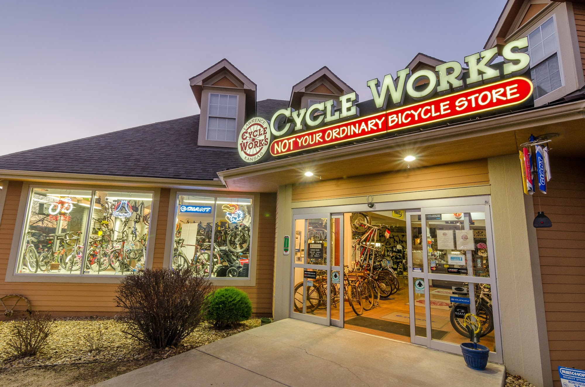 Cycle Works is a great local bike shop in Lawrence, Kansas, established in 1973. It is a one-stop shop for all things cycling, offering a comprehensive selection of bicycles, including e-bikes, gravel bikes, road bikes, mountain bikes, and children's bikes, alongside a full range of cycling gear and accessories. They are the premier service shop in northeast Kansas. The staff are knowledgeable, friendly, engaging, and super helpful, however big or small the need. They are not snobs at all. The shop itself is fascinating, with an interesting array of nostalgic and modern bikes and gear. The owner is very helpful and very knowledgeable. The team is honest about what a bike actually needs and believes in making bikes work, not about putting new parts if there's no need. They get right on repairs, often with a simple fix, and have worked overtime to help customers. Their prices are reasonable and extremely reasonable for services like repairs, wheel building, and tune-ups. The shop is awesome and highly recommended as a real bike shop that cares and knows bikes.