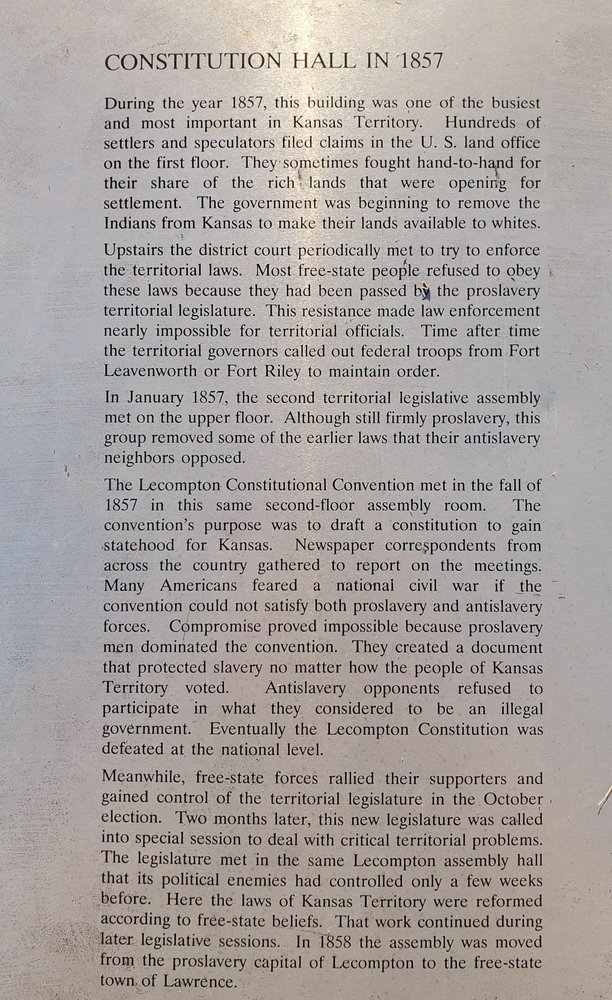 The family was in Lawrence for kids’ event and had a free morning. After reading a little of the history of Lecompton we went to the Constitution Hall. Great historical spot to stop! Eric provided a wonderful history lesson! Well worth the time to go. Free of charge but do have donation boxes.