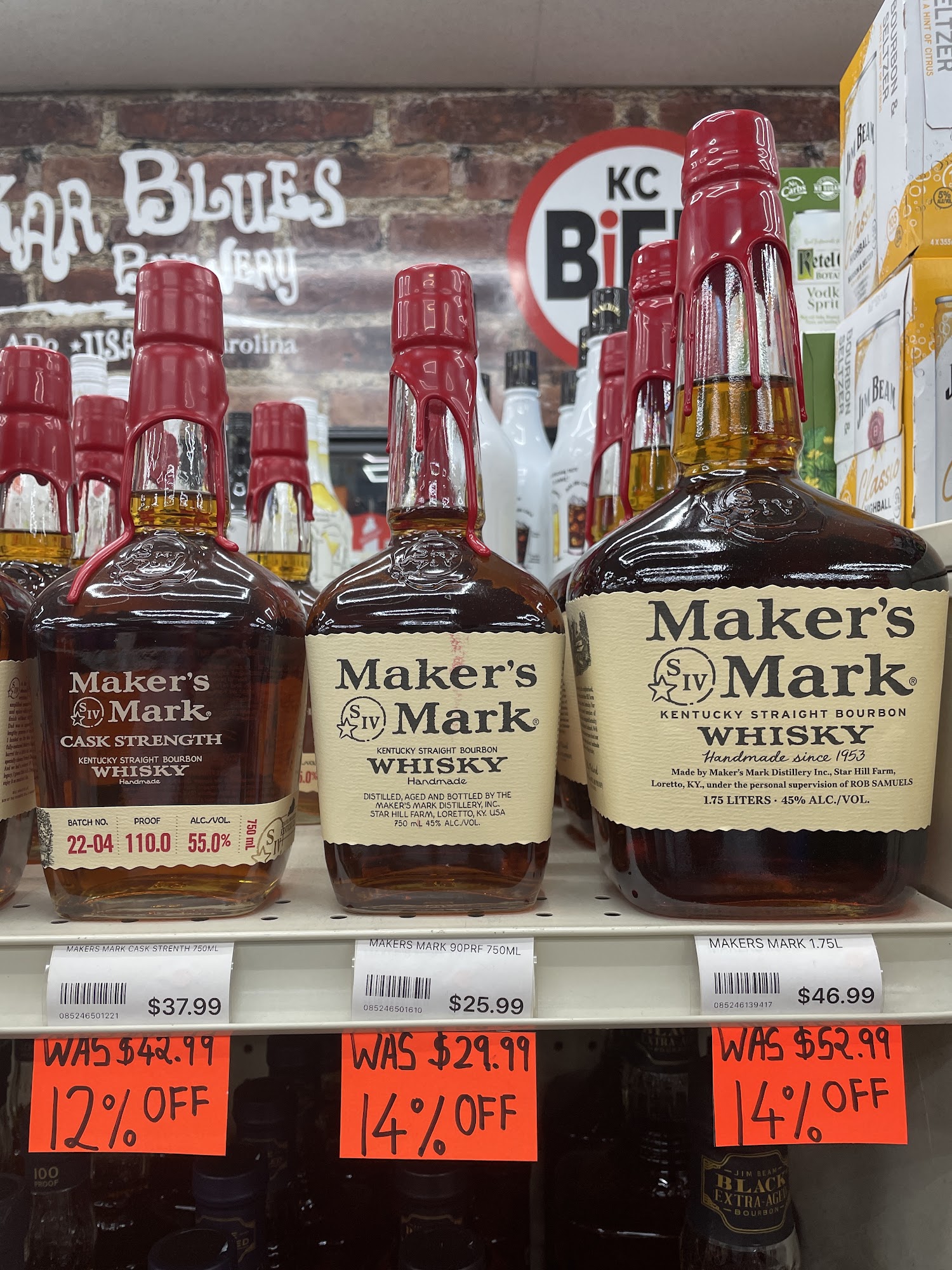 Exceptional pricing on select bourbons, especially Elijah Craig and Maker’s Mark.