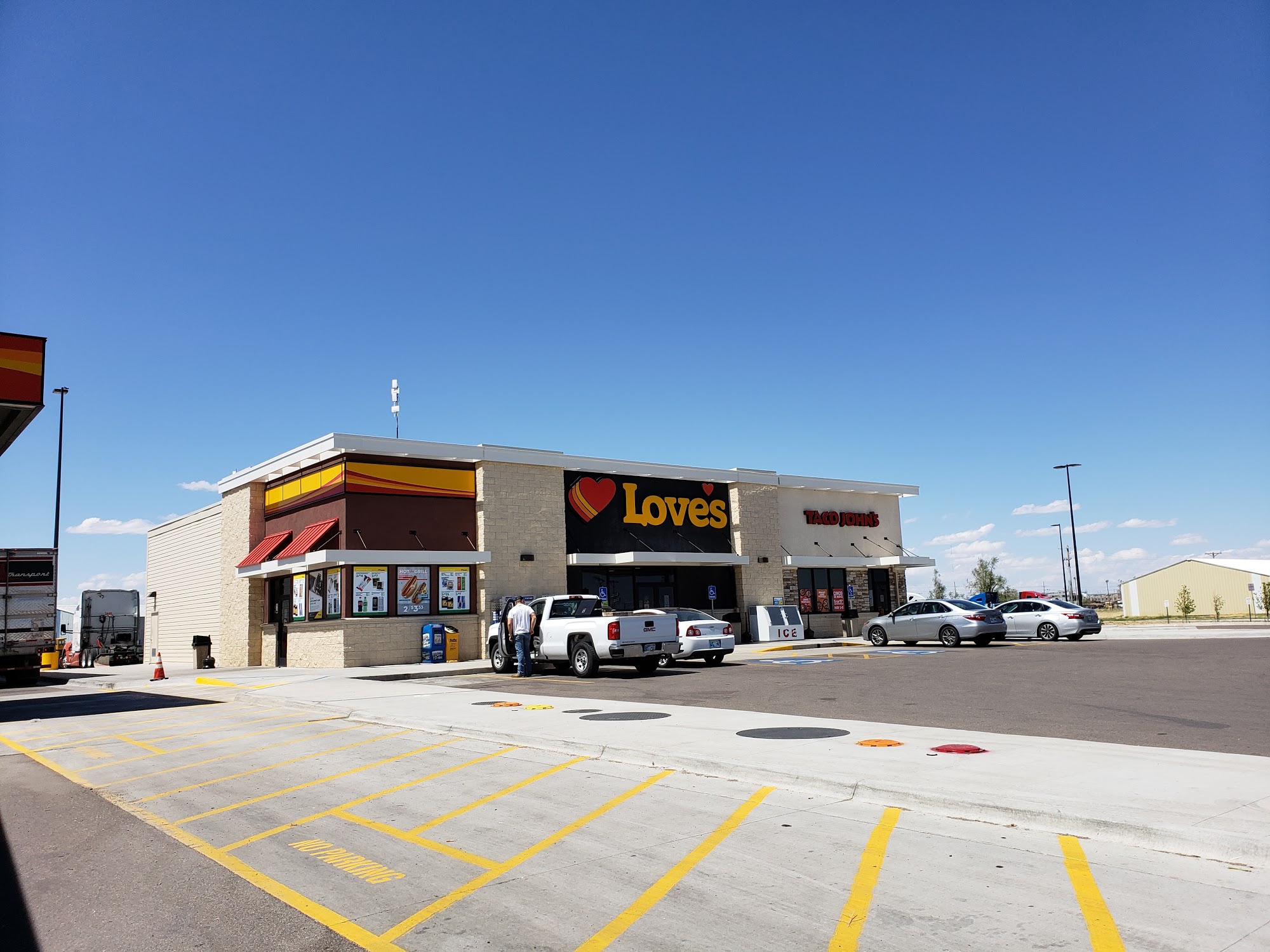 Pretty good loves. Lots of trucks here busy cow town. Large fuel island with windshield washing buckets and long squeegees. Large store that is clean with clean showers nice staff. Lots of cow trucks here. Good location.
