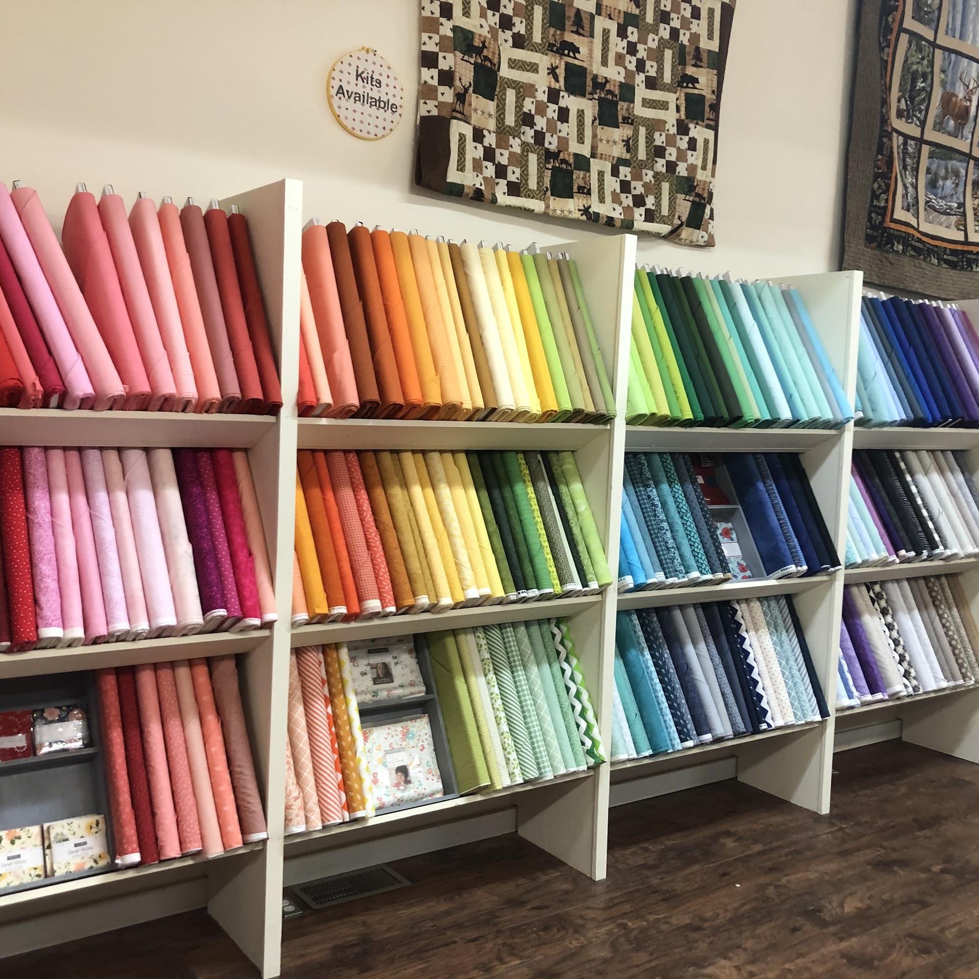 We carry Moda, Riley Blake, Henry Glass, Shannon Cuddle, Bella Solids, Kansas Troubles and more as well as a full service longarm featuring 3 Gammill's with Statlers. We make custom quilts for customers and ship fabric and quilts throughout the United States. Check FB for last minute hour changes prior to driving