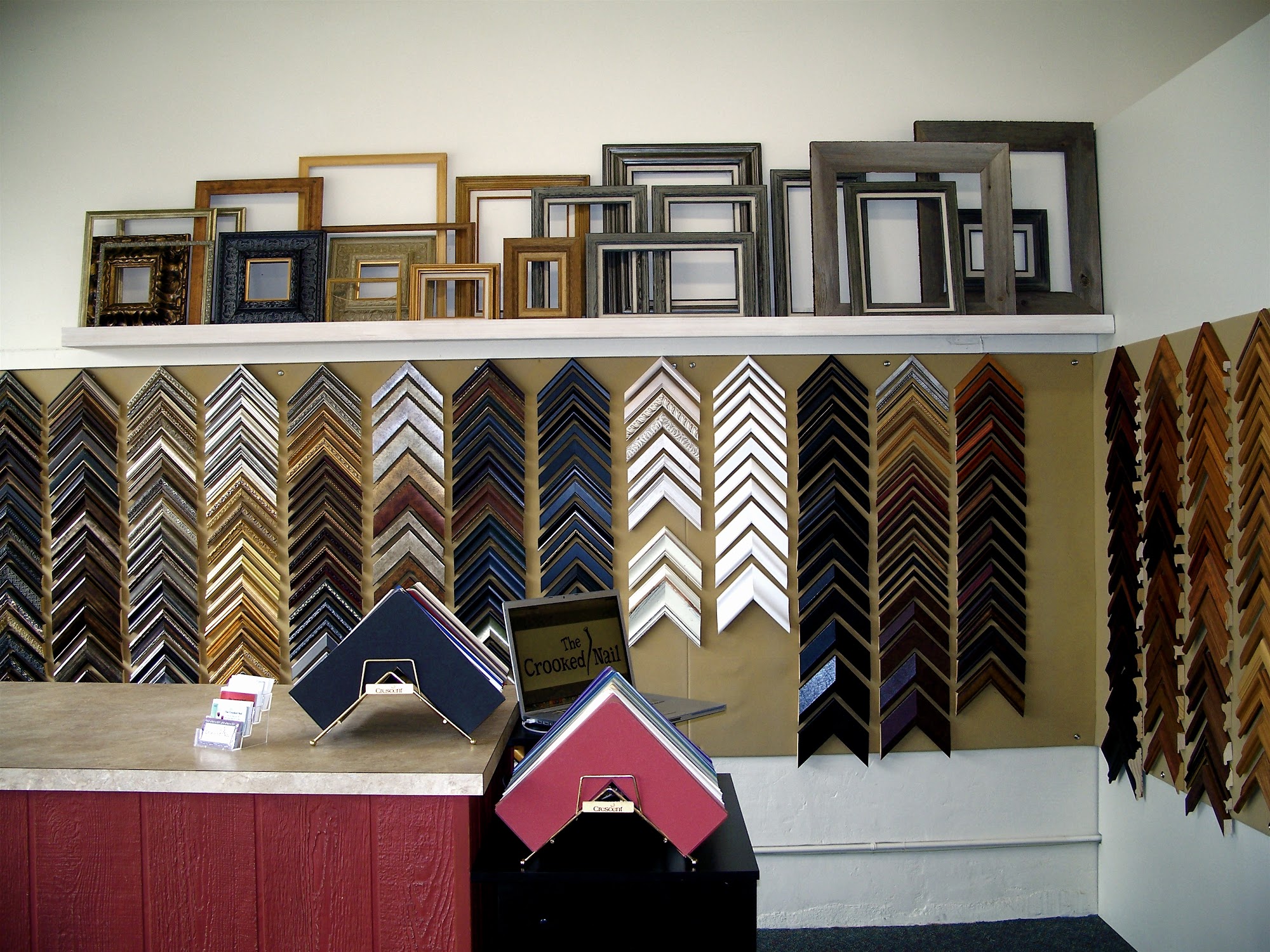 The Crooked Nail is a custom picture framing service and art studio located in Minneapolis, Kansas; providing high quality framework at hometown prices. Owned by trained artists with interior and graphic design backgrounds, we are excited to help you preserve your memories with extreme care and detail. Now teaching group painting classes! Follow us on Facebook or visit our website to learn about upcoming events! Please call ahead or message us to make an appointment!