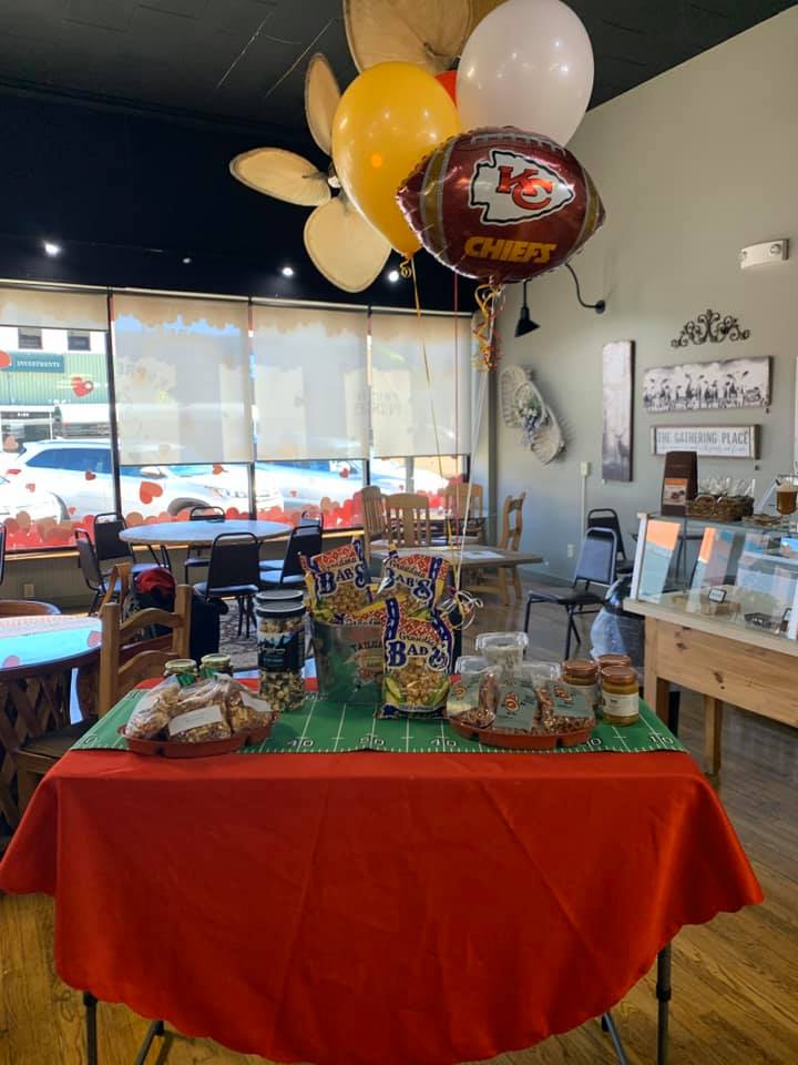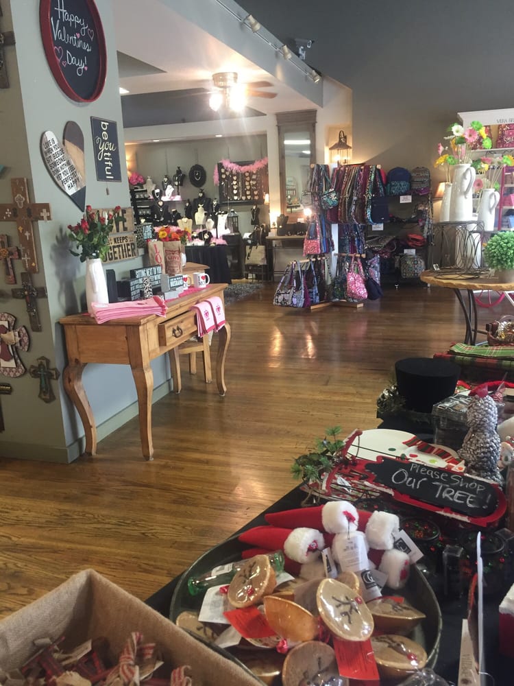 Lots of neat little items you can purchase for home decor or as a gift, clothes for all ages, and a coffee bar. ?