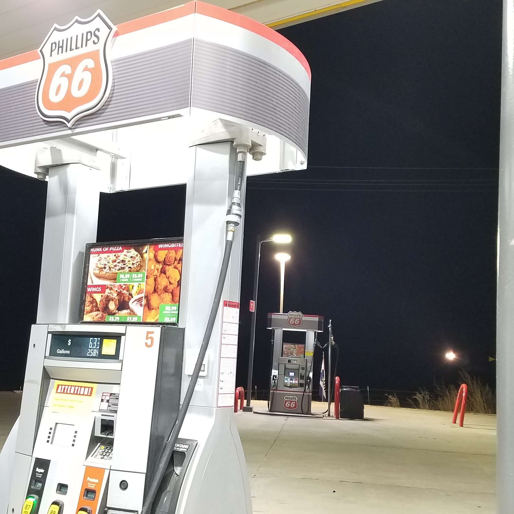 Phillips 66 is a convenient and clean gas station located off the highway, making it a good stop for fuel and restrooms. The bathrooms are small but kept clean, although sometimes out of soap. The store offers a variety of items, including pizza and chicken sandwiches, which are popular and well-liked. Gas prices are reasonable, and the pumps are reliable, with no issues reported. The store is neat, with a friendly atmosphere, and features a small garden during summer that adds a welcoming touch. Overall, it’s a simple but pleasant place to stop for gas, food, and a restroom break.