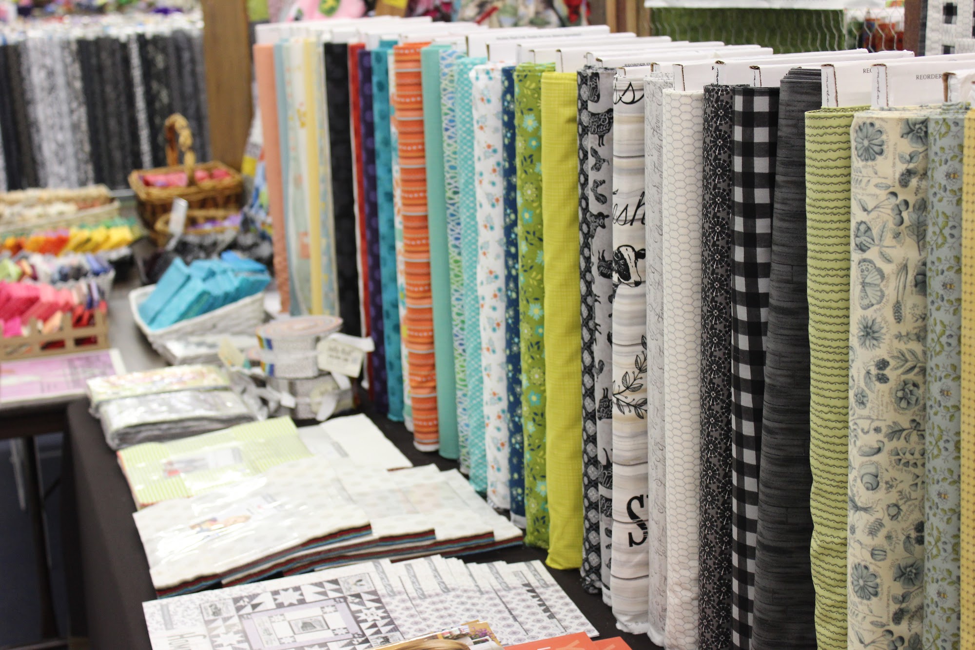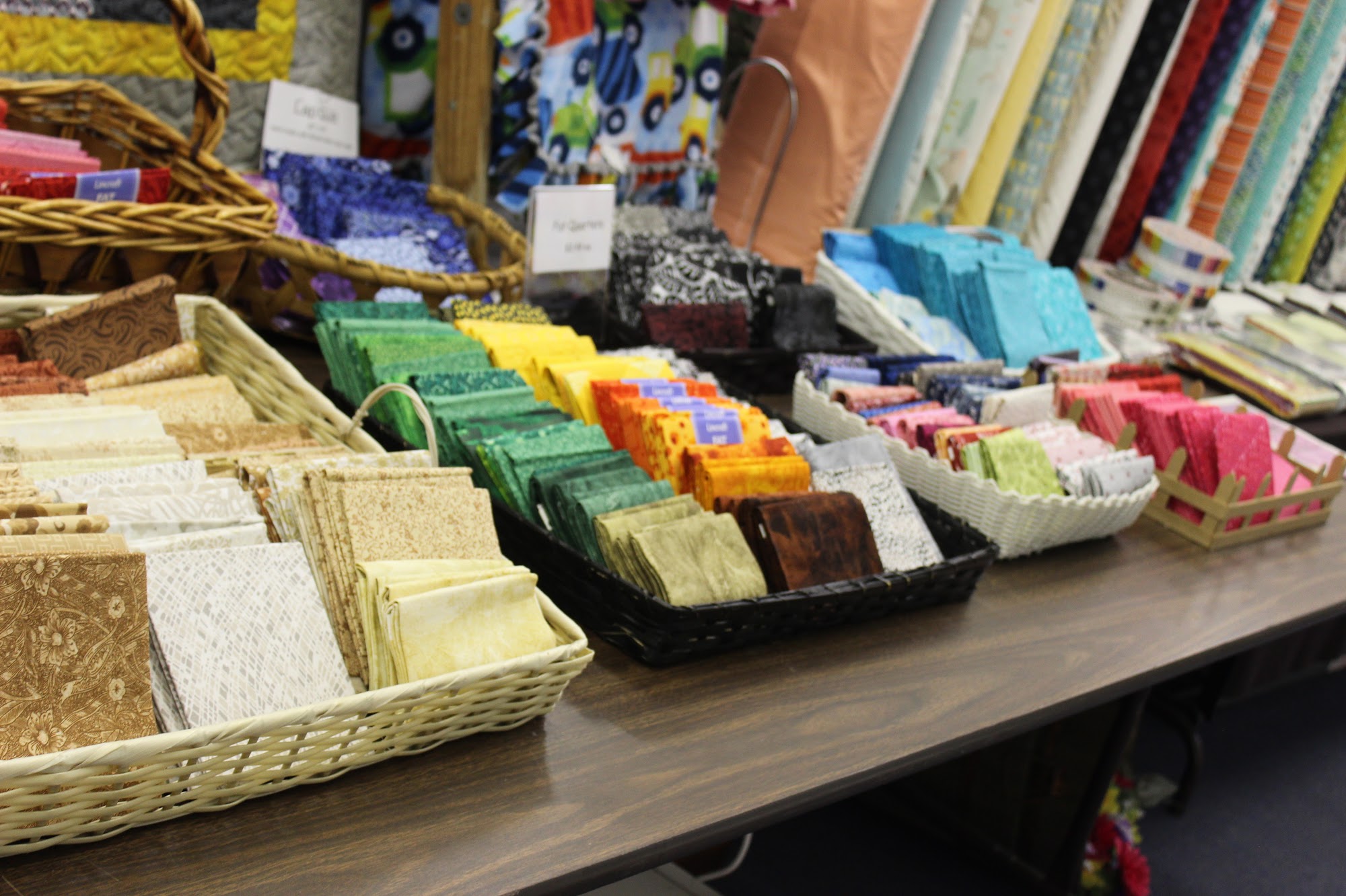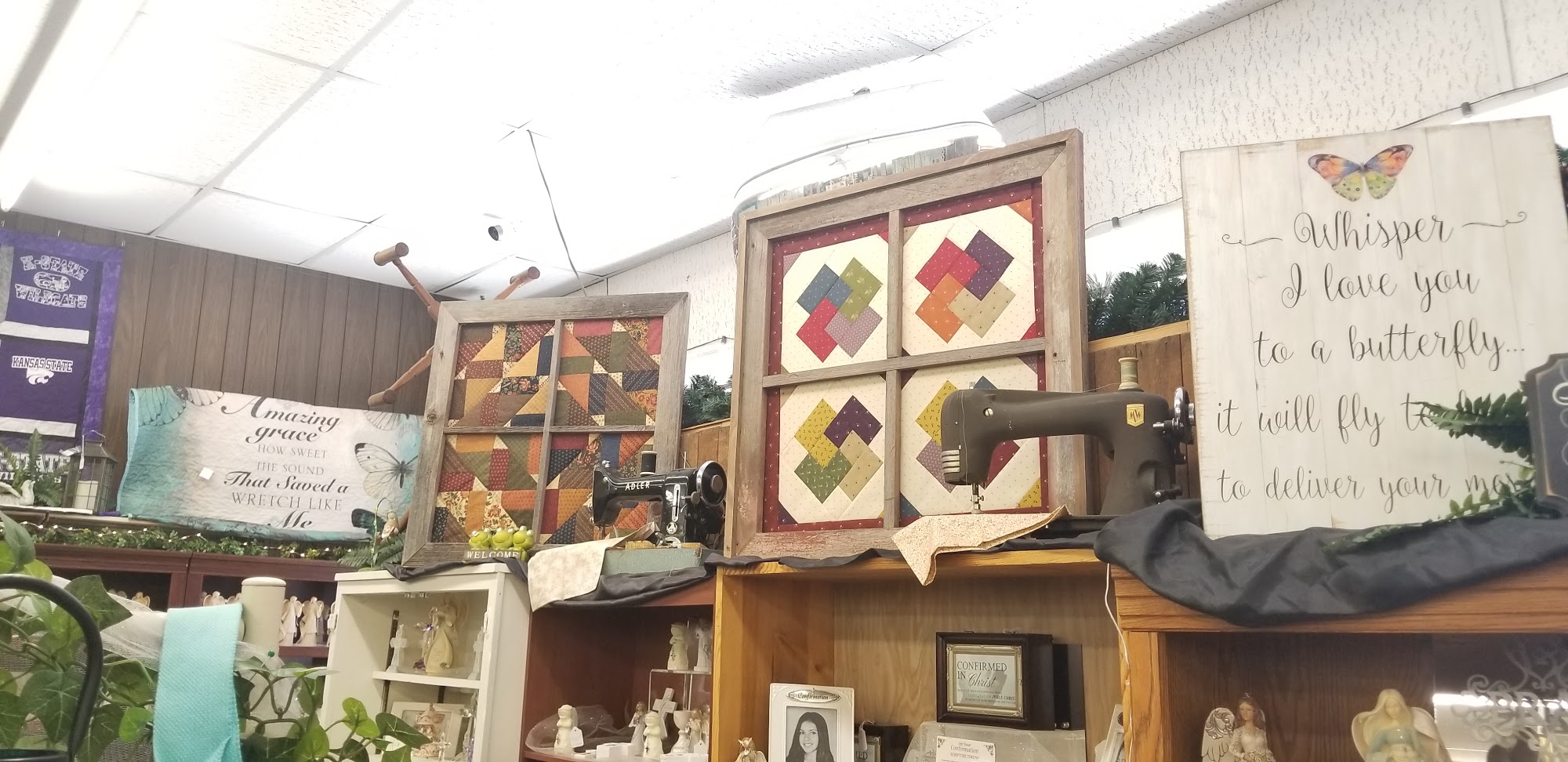 Seneca Variety is an everything and more store that carries things for quilters and crafters, fabric, notions, cards, Melissa and Doug toys, Tomy toys, home decor, floral, seasonal items, First Communion dresses and veils, gifts, bereavement statues, and more. The store is a very nice variety store with a huge selection of bolts of fabric, a vast assortment of old fashioned items, and great fabrics, patterns, hard to find items to embroider, and wildlife panel kits. Displays are pretty and the helpful and friendly lady provides great service. Visitors during the all Kansas and Nebraska quilt shop hop found the ladies working here enthusiastic and well worth a bit of a drive.