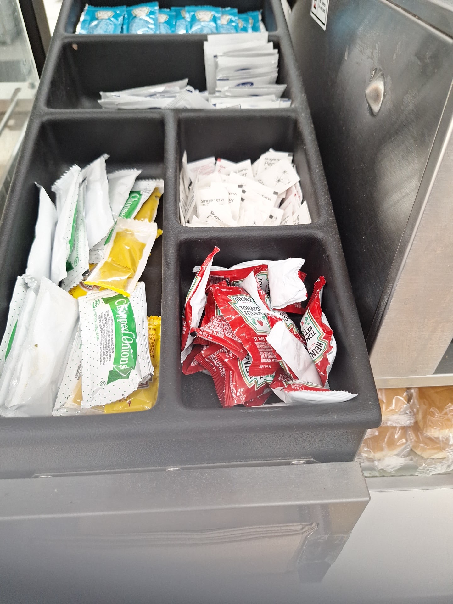 Clean store, typical small gas station amenities, prepackaged sandwiches, booze, small vehicle supply selection, smokes and vapes.