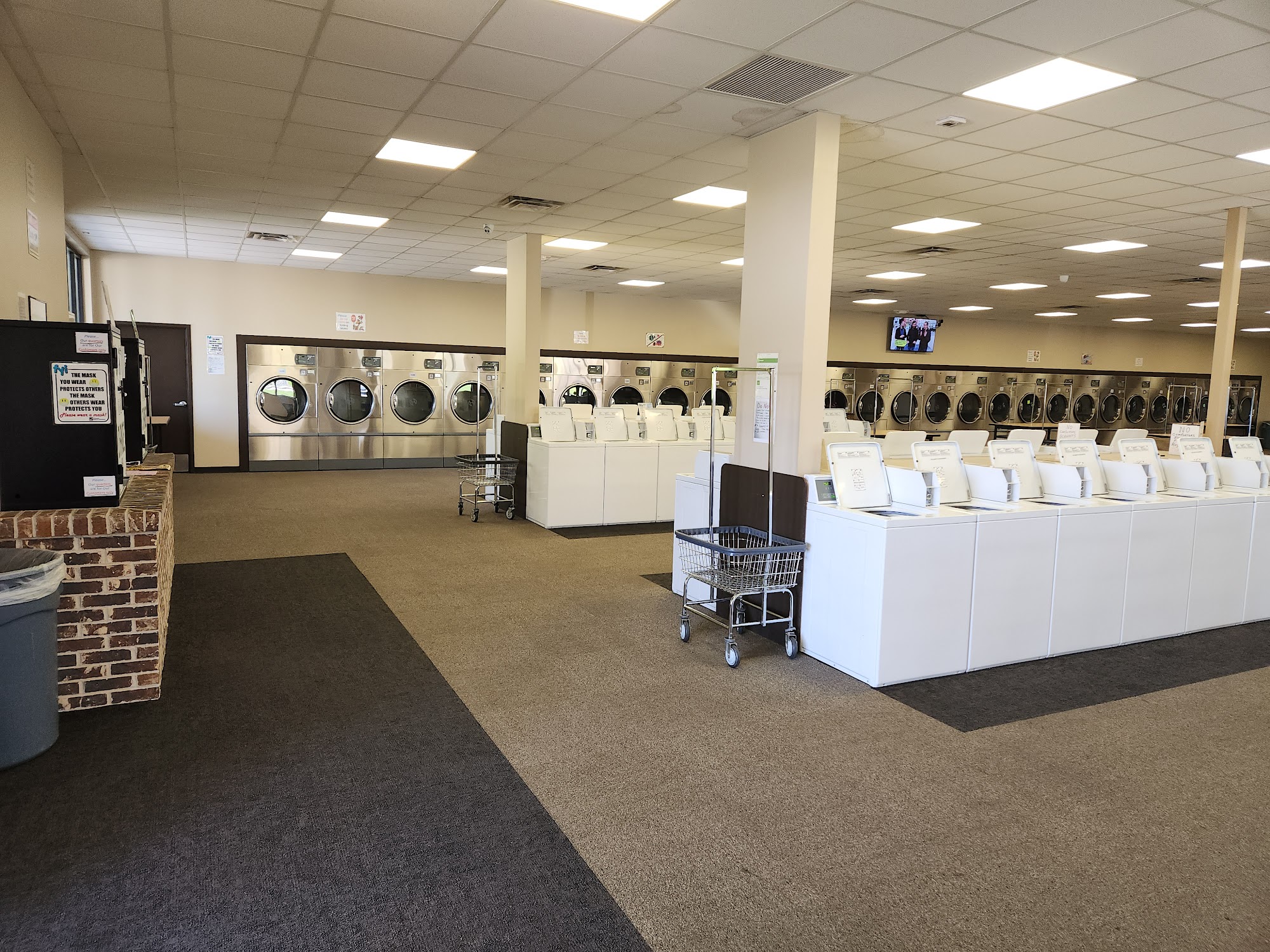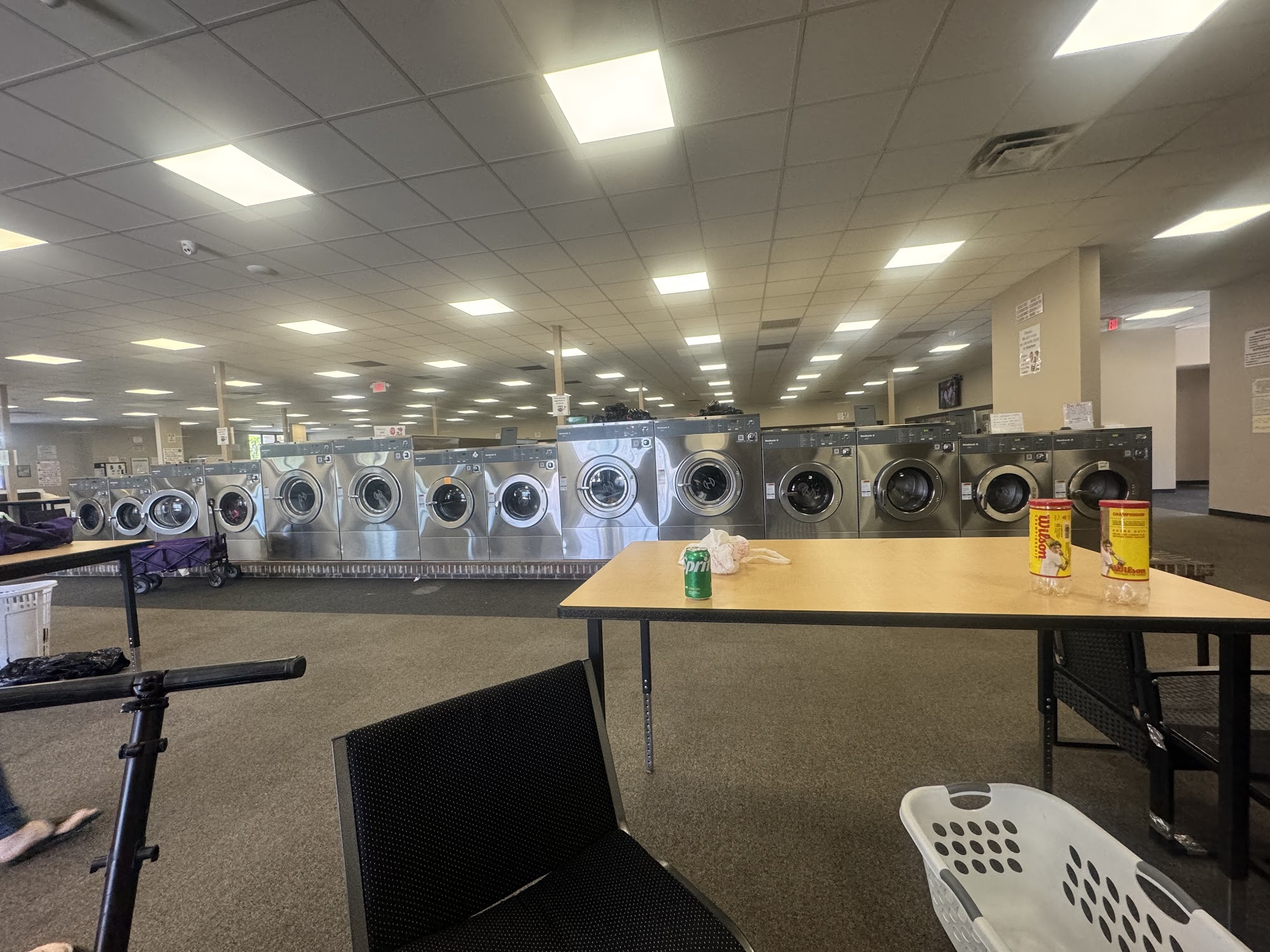Aquablast Laundromat is a spacious and clean facility offering an excellent laundry experience. With 12,000 square feet, it features a variety of machines, including 52 large dryers and 56 top-load and 28 front-load washers, ensuring that customers rarely have to wait. The laundromat has ample folding tables and comfortable seating, including side-less chairs for easy access. It also provides free WiFi, vending machines, and entertainment options like TVs for a pleasant waiting experience. First-time visitors find the setup easy to navigate, thanks to clear signage and helpful staff. The app available for download allows customers to pay from their phones and monitor their laundry without needing to get up. Cleanliness is a priority, with regular staff cleaning and no signs of bugs reported. Aquablast Laundromat is not just about laundry; it offers a friendly environment where customers can feel comfortable while getting their laundry done. Overall, it is a well-equipped and welcoming laundromat that many plan to return to. For more information, customers can call 785-783-7233.