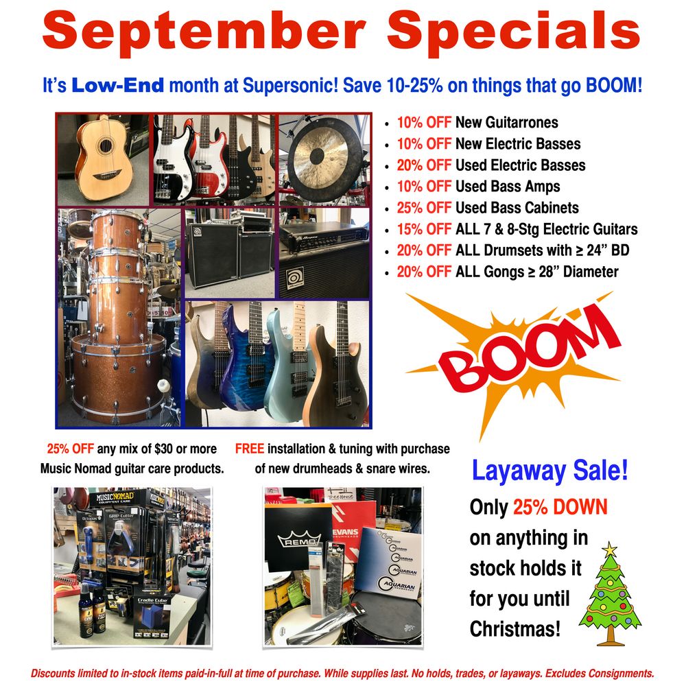 Supersonic Music is a vibrant music store located in Topeka, specializing in beginner-to-pro drums and guitars. It is also the home of TreeHouse Custom Drums, offering professional drums that ship worldwide. The store provides a variety of services, including buying, selling, trading, setups, repairs, and private lessons for drums and guitars. Customers often praise the super friendly and knowledgeable staff, who create a comfortable environment for learners of all ages, including young children. The shop carries a great selection of instruments and equipment, including locally made drum sets, ensuring that customers find what they need. Supersonic Music is also actively involved in local live music events, enhancing its reputation as a community staple. Customers appreciate the helpfulness of the staff, who respect all levels of knowledge and inspire continued journeys in music. The store also offers PA system rentals at competitive prices, making it a go-to destination for musicians and event planners alike. Overall, Supersonic Music is celebrated for its extensive inventory, fair prices, and exceptional customer service.