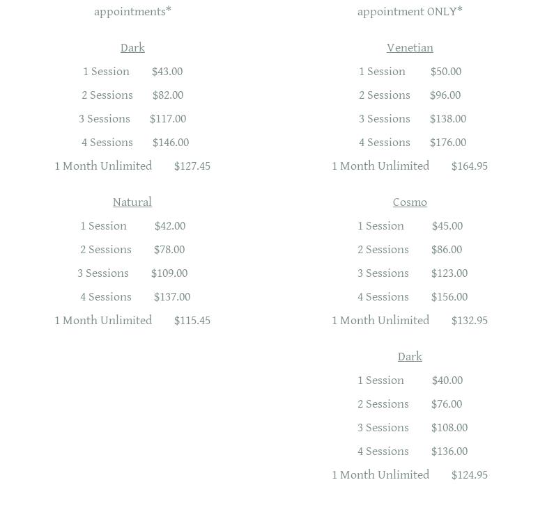 Nice clean place to tan. Only complain is they didn't fix a burned out bulb in bed 8 after I told the owner. 2 weeks later still out.
