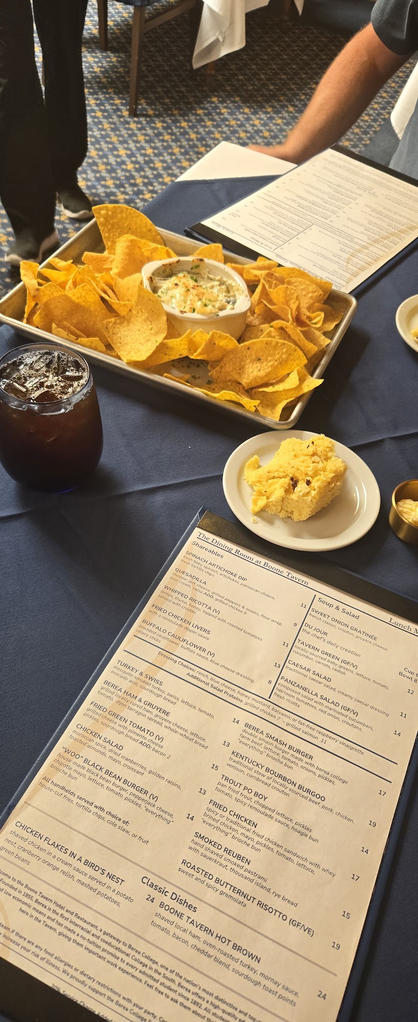 Historic Boone Tavern Hotel and Restaurant features a beautiful dining experience at its Crafted restaurant. Guests enjoy a warm ambiance, excellent hospitality, and delicious farm-to-table meals. The spoon bread served with fresh butter is a highlight, and the menu offers reasonably priced options like the flavorful Marry-me-chicken, perfect for couples. Breakfast is also praised for its quality, and the waitstaff is noted for being attentive and professional. The restaurant is celebrated for its seasonal, scratch cooking, and diners appreciate the inviting lobby areas for gathering with friends. While some diners experienced minor issues, such as incorrect orders or specific entrees lacking flavor, the overall experience remains positive. The dessert, especially the bread pudding with caramel bourbon glaze, receives high praise. With its commitment to supporting Berea College students, this local gem stands out as a fine dining choice in Madison County. Overall, visitors look forward to returning for another enjoyable meal in this historic setting.