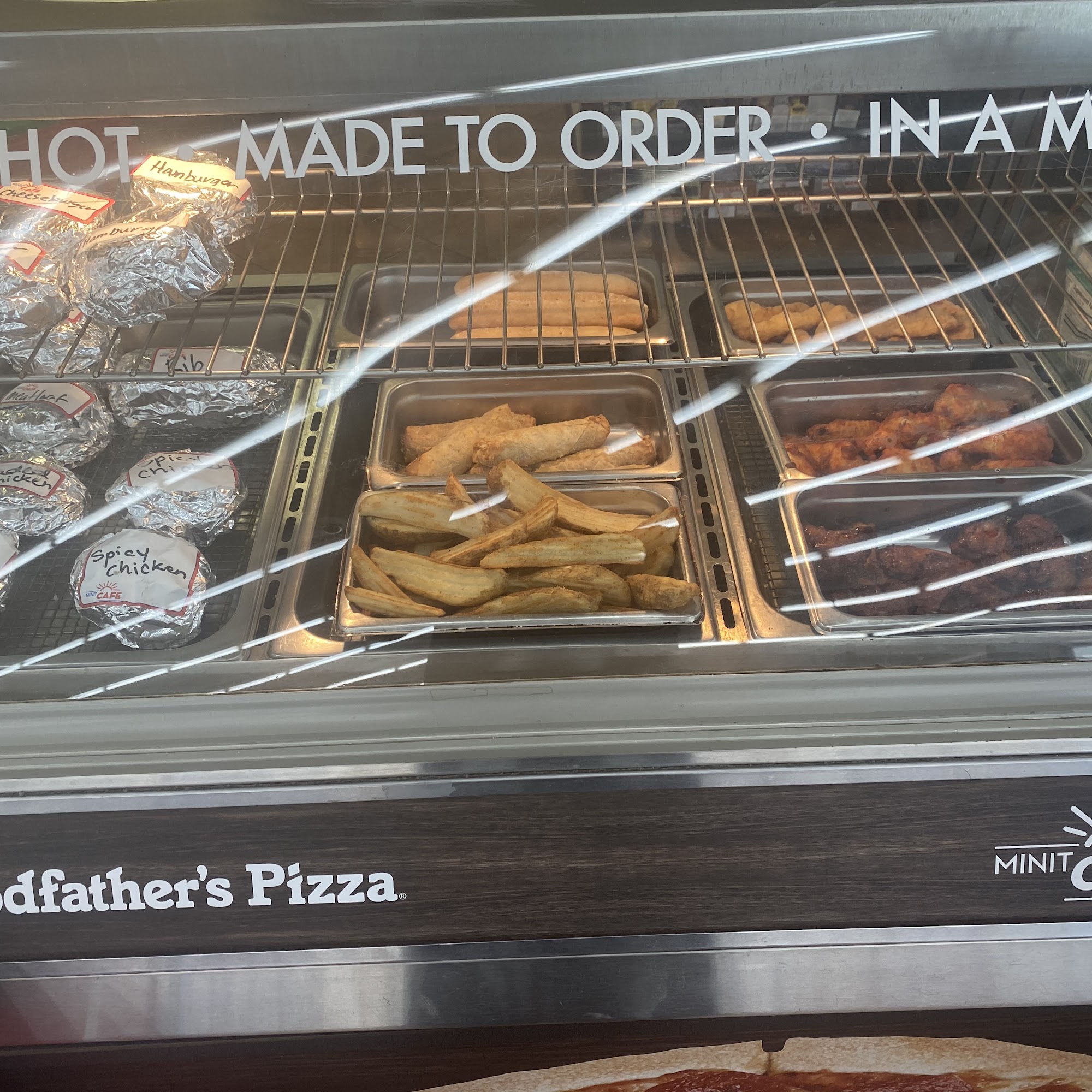 The pizza sucks!!; can't get a sub even though they supposedly sell them there's never anyone there to make them when I stop. At least the bathrooms normally clean