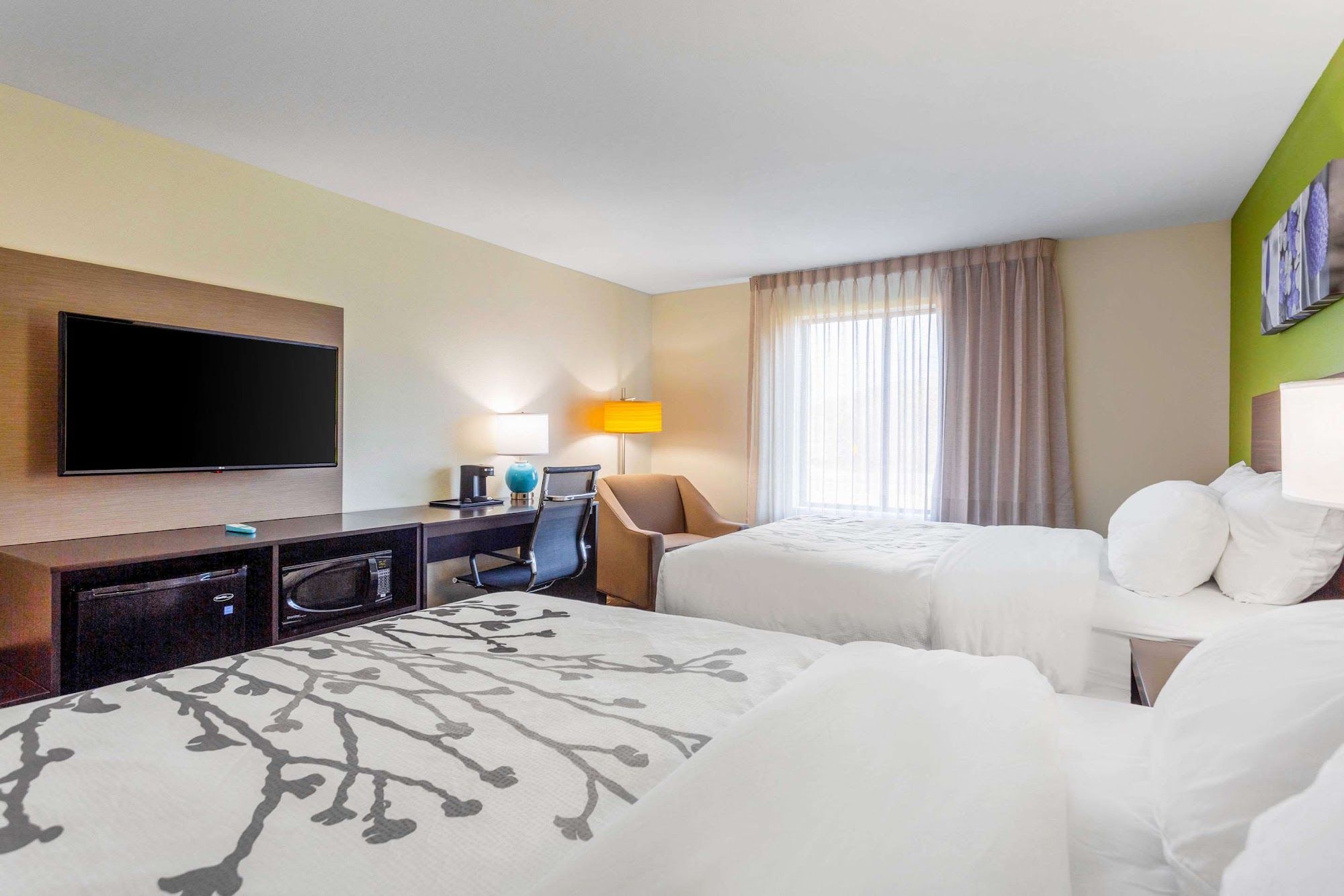 Sleep Inn is a clean and comfortable hotel located near the Corvette factory, track, and museum, making it a convenient choice for visitors. Guests often praise the spotless rooms, modern decor, and comfortable beds that provide a home-like feel. The rooms are spacious, with beautiful views and updated furniture, ensuring a pleasant stay. The pool area is well-maintained and enjoyable, although some guests wish it was a bit warmer. The hotel is situated in a safe and quiet area, away from interstate noise, but thin walls mean noise from nearby rooms can be heard. The staff is friendly and accommodating, contributing to a positive experience. Breakfast offerings vary; some guests found it to be a good spread with cereal, waffles, and fruit, while others experienced shortages or a limited selection. Overall, guests find Sleep Inn to be a good value for the price, providing a clean, comfortable stay with friendly service and a convenient location. It is highly recommended for travelers seeking a reliable and pleasant hotel experience.