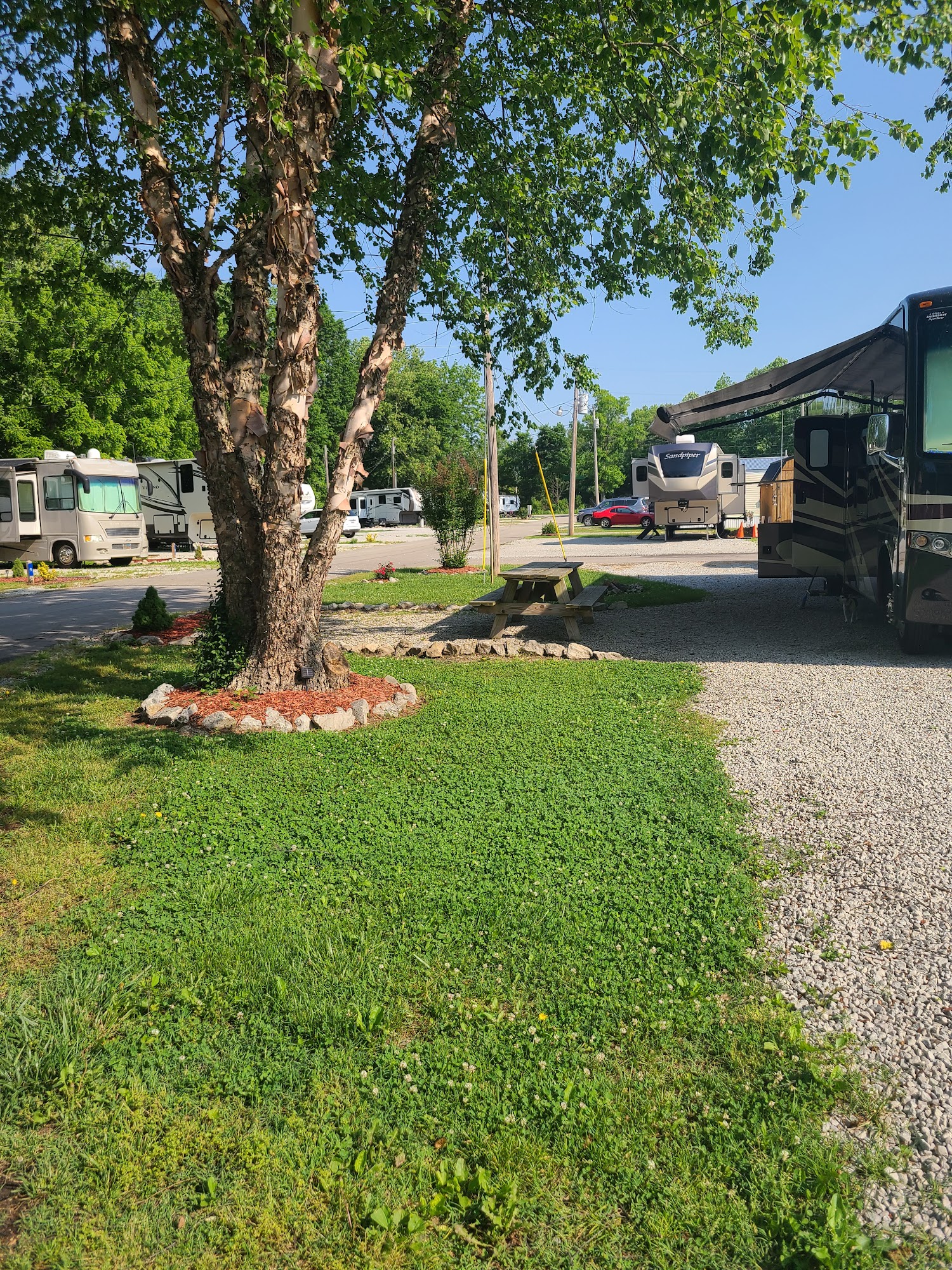 Brooks RV Park in Louisville, KY, is a safe and beautifully landscaped full hookup RV park that offers a convenient and peaceful stay. Located just 1.8 miles from I-65 and three miles south of Louisville’s outer loop, it provides easy access to the city’s attractions, including Churchill Downs, downtown Louisville, shopping, restaurants, and the Bourbon Trail. The park is open year-round and offers both long and short-term sites, including creek front, concrete pad, and pull-through sites. It is known for its cleanliness, friendly neighbors, and helpful management. Guests appreciate the quiet environment, with no road noise, and enjoy the occasional train whistle, which adds a nostalgic touch. The park’s landscaping is attractive, and amenities include nearby golf courses and convenient access to city amenities. The staff is friendly and helpful, making visitors feel welcomed and well cared for. Many guests mention the park’s excellent customer service and its suitability for extended stays, with some staying for several months. Overall, Brooks RV Park is considered a great place to call home for both short visits and long-term stays, offering a safe, clean, and friendly environment close to Louisville’s highlights.