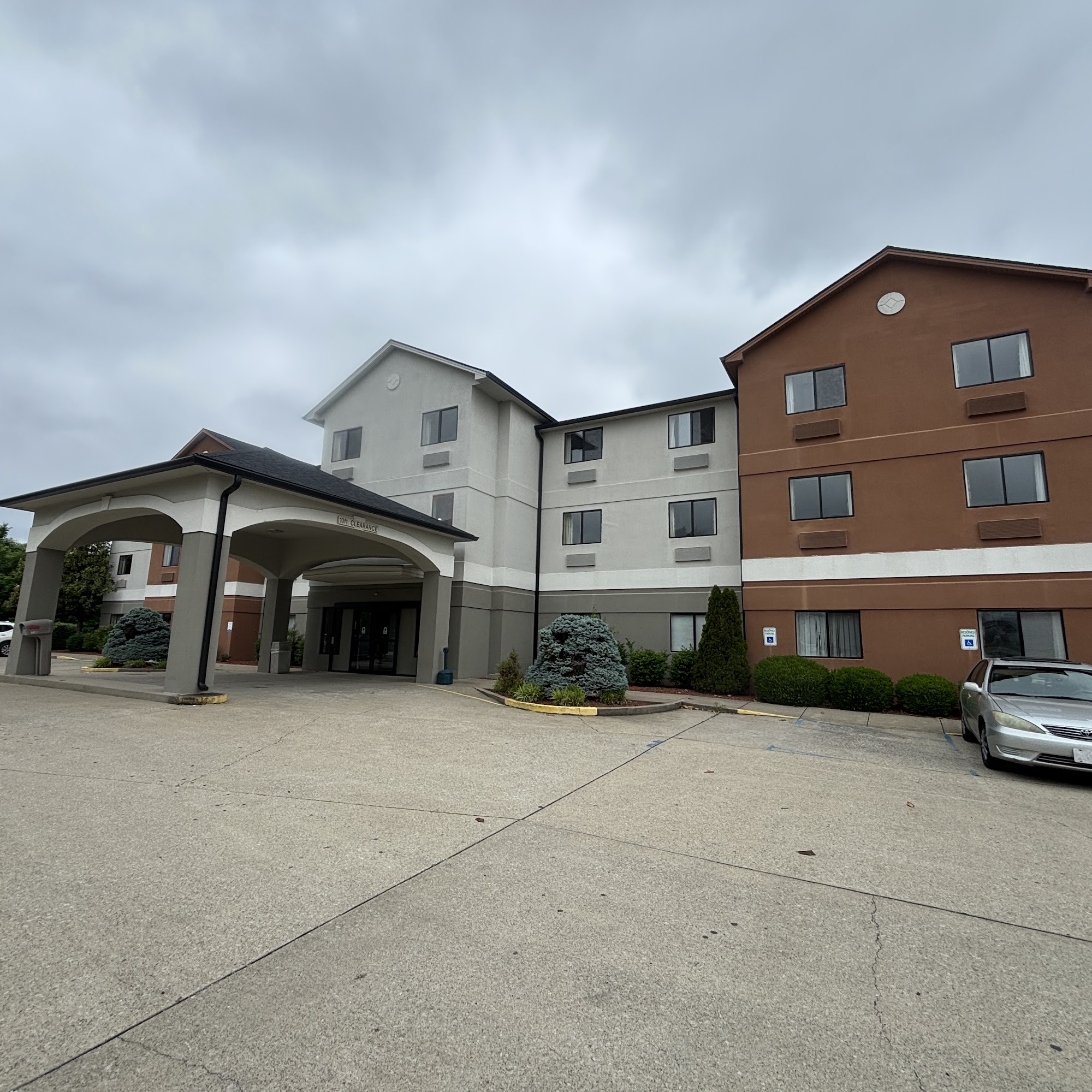 The room was perfectly adequate. The 2nd floor flooring is all taped, like it needed to be fixed/replaced. There was a sign that the pool was out of order since September. (Not sure if it was an indoor or outdoor pool) The breakfast offered no protein which was disappointing.