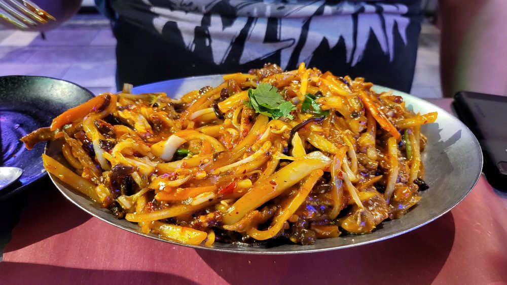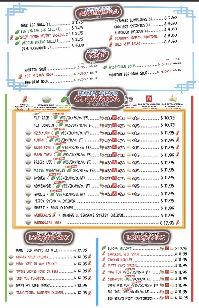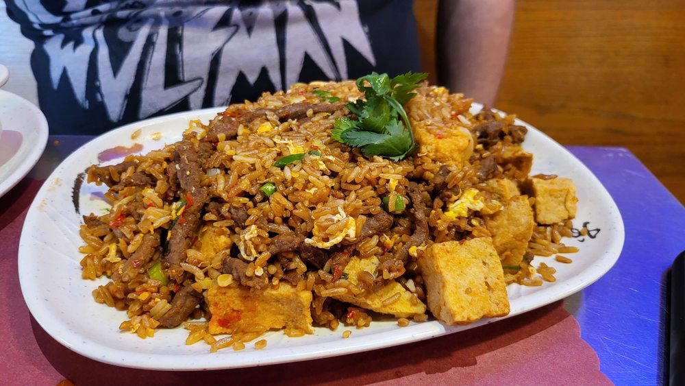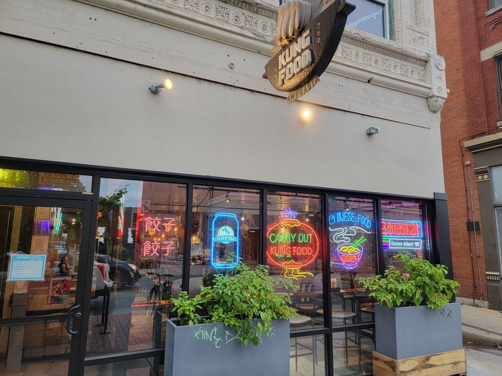 KungFood Amerasia is a vibrant space with excellent interiors and a nice bar. The American Asian fusion menu offers customizable options for vegetarians. The crab Rangoon was creamy and crispy, and the cashew chicken, Garlic tofu, and Ma po Tofu were all tasty. The cocktails received positive comments, and the art in the restaurant adds to its charm, although the menus could benefit from a refresh. Many customers enjoy the Chicken Lomein and Fried Rice, which are popular choices. The restaurant offers spice levels from 1 to 10, allowing guests to enjoy dishes mild or very spicy. Some dishes, like the orange chicken and Mongolian beef, are highly recommended, with the latter described as "absolutely amazing." The service is friendly and attentive, and the owner is caring. Overall, it is a popular spot for repeat visits, especially for those who enjoy flavorful food with customizable spice levels.