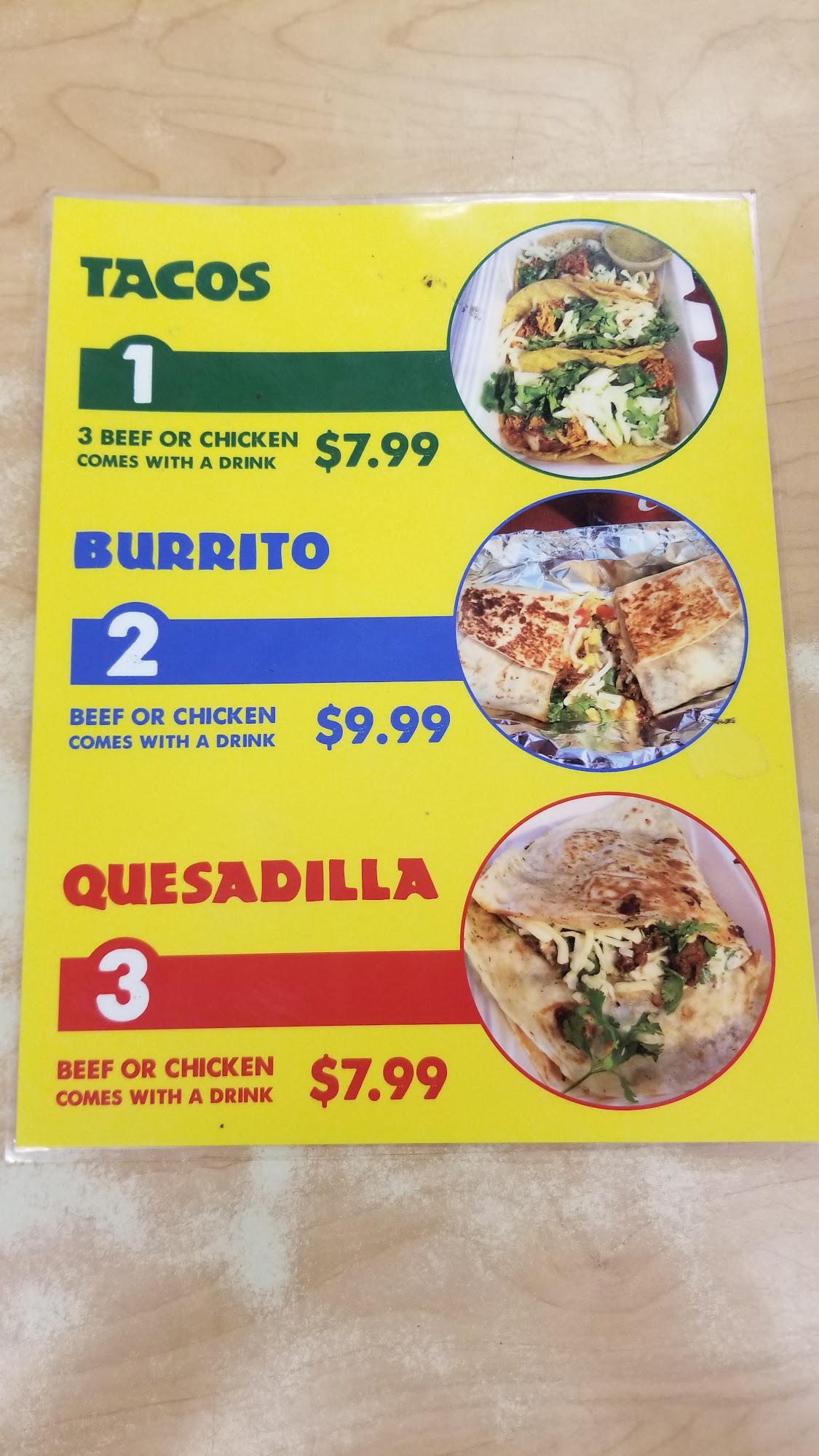 Chicken tacos and beef burrito were very tasty. Perfect little local shop to grab a quick bite to eat. If you like to support a small local business give them a try.