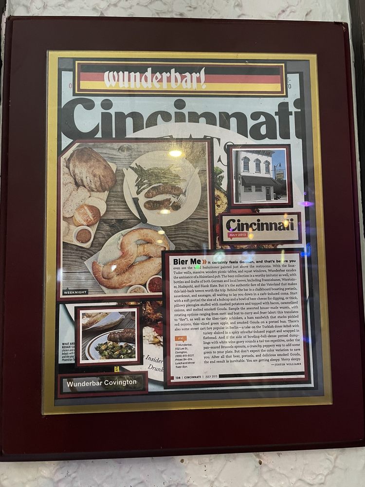 Wunderbar! is a relaxed spot in Covington known for its great sausages and beers, especially enjoyable with live music in the courtyard. The Borden dish is highly recommended, and the place offers quick service and fresh food. The bar staff can have different attitudes, but they add to the lively vibe. Despite being called a bar, it serves incredible food like the Pork Schnitzel Sandwich and Giant Pretzel with Beer Cheese. Visitors often come for the friendly neighborhood atmosphere and outdoor area, though the indoor space can get a bit crowded. The restaurant is also praised for its high-quality German cuisine, including heavenly Currywurst, delicious pierogi with proper chew and outstanding cream sauce, and doner kebab that brings back street food memories from Germany. The sausages and braised cabbage are also highly appreciated. Wunderbar! is a popular place for good food, great drinks, and live music, making it a must-visit for those looking for a friendly environment and tasty German dishes.