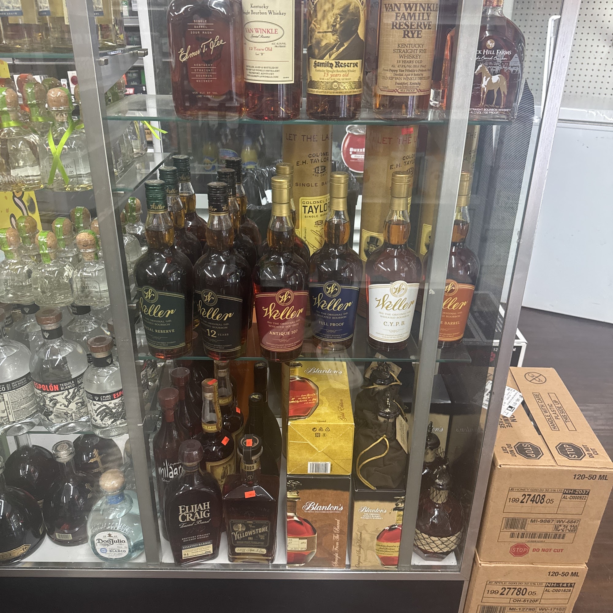 Good selection, but the allocated whiskeys are priced at museum prices.