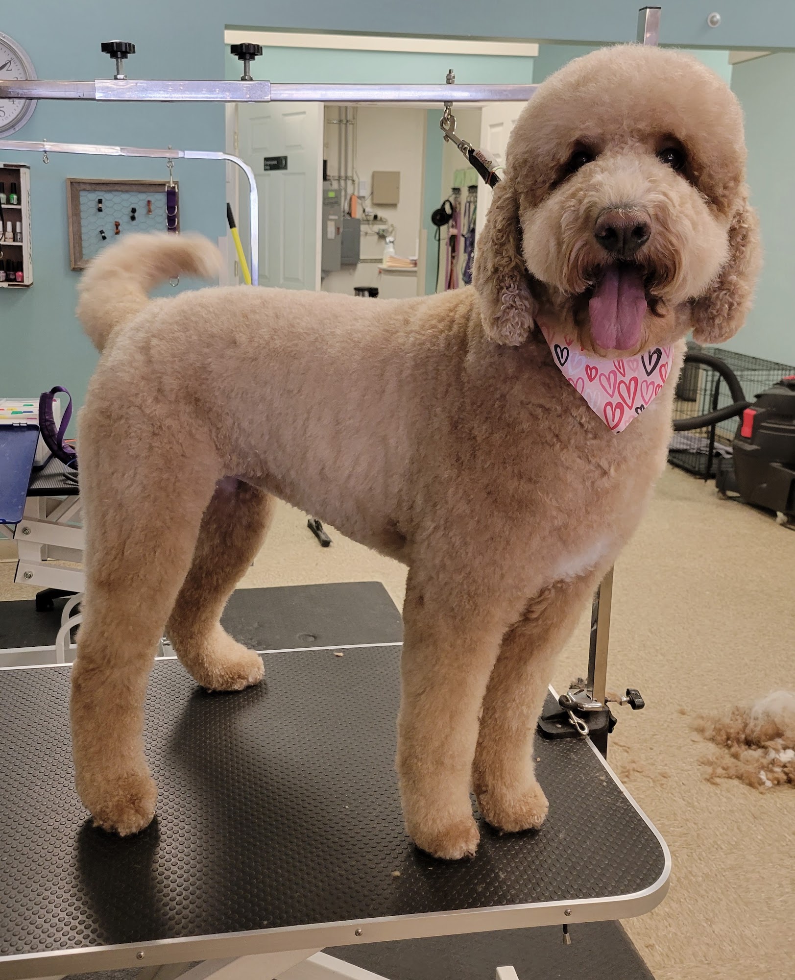 They took care of Finn, bath and nails trimmed. They also trimmed the hair between his toes. :-)