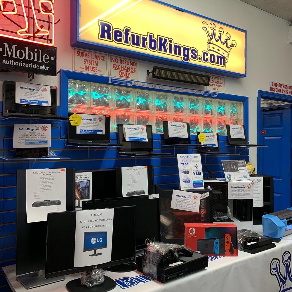Refurb Kings Buys, Sells & Repairs smartphones, laptops, tablets, game systems, and more. We specialize in iPhone Repair, Samsung smartphone repair and other LG, HTC, Motorola, and more can be serviced and repaired at Refurb Kings. Refurb Kings also repairs iPads, Samsung Tablets, Motorola Tablets, LG Tablets, and many other brands. Affordable repair options for most brands of computers in today's market like APPLE, HP, IBM, DELL, LENOVO, ASUS, ACER, TOSHIBA and many more. We provide affordable, contract-free wireless plans from Ultra Mobile, H2O Wireless, Red Pocket Mobile, & T-Mobile. CASH for used laptops, smartphones, game systems & tablets. Stop by our location for a FREE quote today.