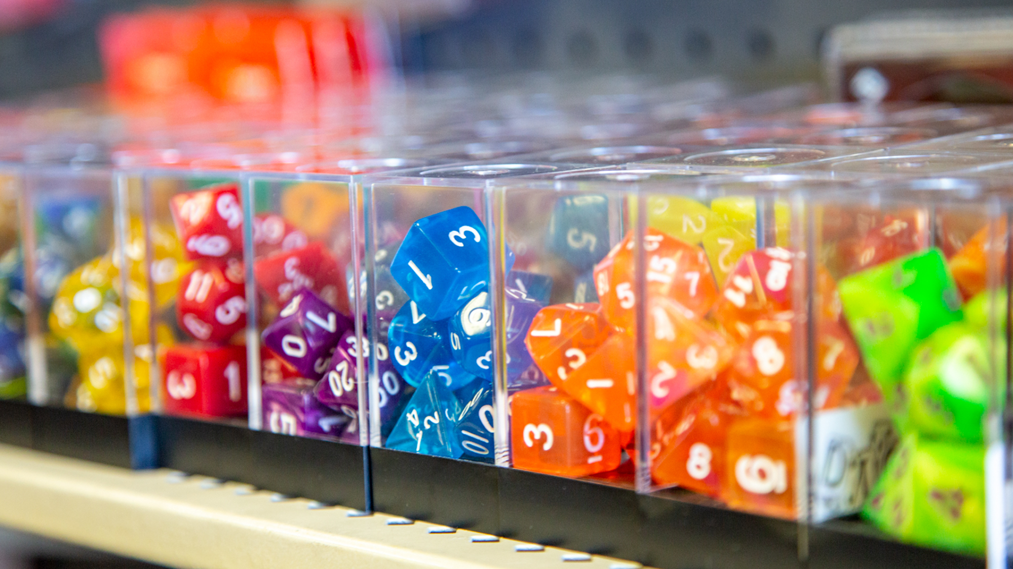 We carry Board Games, RPGs, Card Games, Dice and tabletop miniatures. We carry companies like: Asmoee, Wizkids, Fantasy Flight, Privateer Press, Games Workshop, Hasbro, Reaper Miniatures, Loony Labs , Bandai , Bezier games, Chessex, C.M.O.N, to name a few We carry games like: Catan, Pandemic, Cards Against Humanity, Fluxx, Dungeon and Dragons and D&D Miniatures, Pathfinder, Warhammer 40K, Bolt Action, Bones Miniatures, Hero Clix, , Warmachine, Clank!, Battletech, Betrayal at House on the Hill, Photosynthesis, Queendomino, Five Tribes, Terra Mystica, Hanabi, Port Royal, Potion Explosion, Agricola, Kingdomino, Splendor, Codenames, Scythe, 7 Wonders, Carcassonne, King of Tokyo, Love Letter, Dominion, Twilight Imperium, Star Wars, L5R Lege