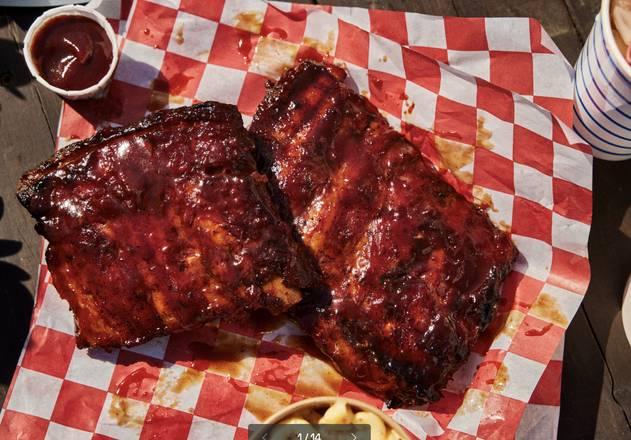 Great ribs and sides. This is a BBQ stand with no seating. Staff on phone and at window were friendly. A half rack was plenty meaty for 2 adults and they were falling off the bone tender.