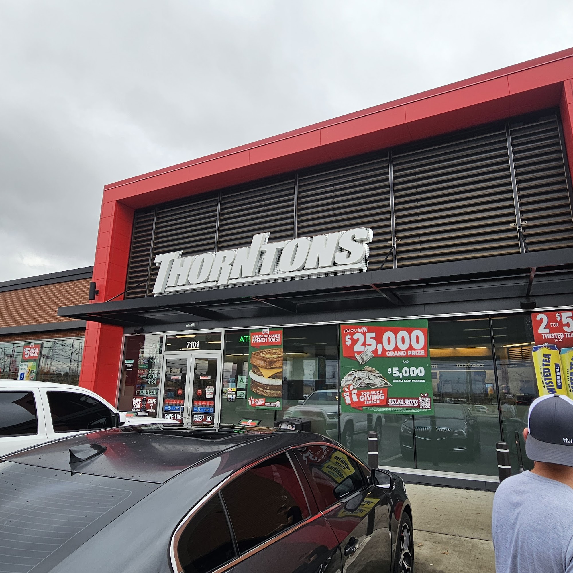 Thorntons is a fuel station and convenience store offering fresh foods, high quality beverages, and fuel. It provides items like great donuts, hot self-serve food, a variety of fountain drinks, iced drinks, slushies, coffee, and alcohol. Reviews note that customer workers are often friendly and professional, and the bathroom is always clean. The store also features a modern self-checkout. However, some experiences are mixed. The roller grill food is sometimes hard and nasty or completely out, and selections like sandwiches or burritos can be unavailable. Prices are high for everything, including fuel, and pumps sometimes break down or have a slow flow. On occasion, staff can be extremely rude, with one employee yelling loudly at a guest. While the store has a regular selection, some note that hot foods all have cheese, limiting options.