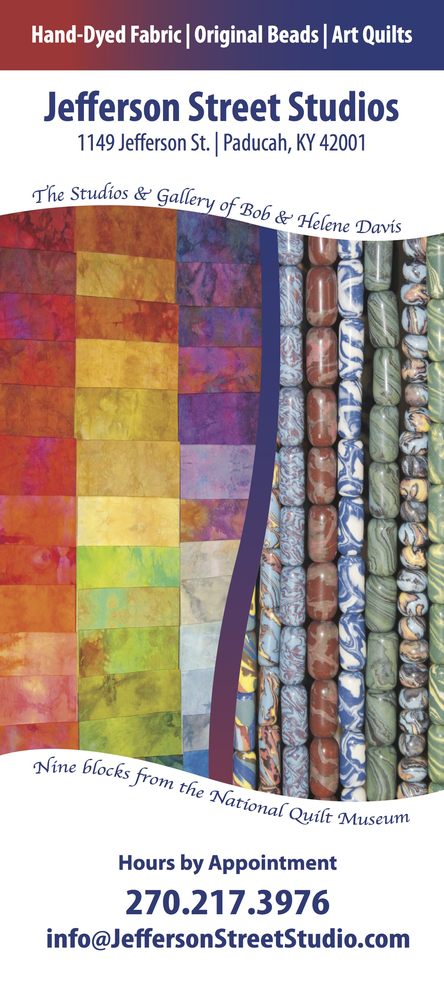 Jefferson Street Studios / Helene’s hand dyed fabric, is a artist gallery/ studio that sells original quilts, hand-dyed cotton yards and fabric roles, unique porcelain Nerikomi Beads and Jewelry. It is located in a renovated former neighborhood grocery store that also houses the owner’s residence. Call 270-217-3976 to request opening or appointment.