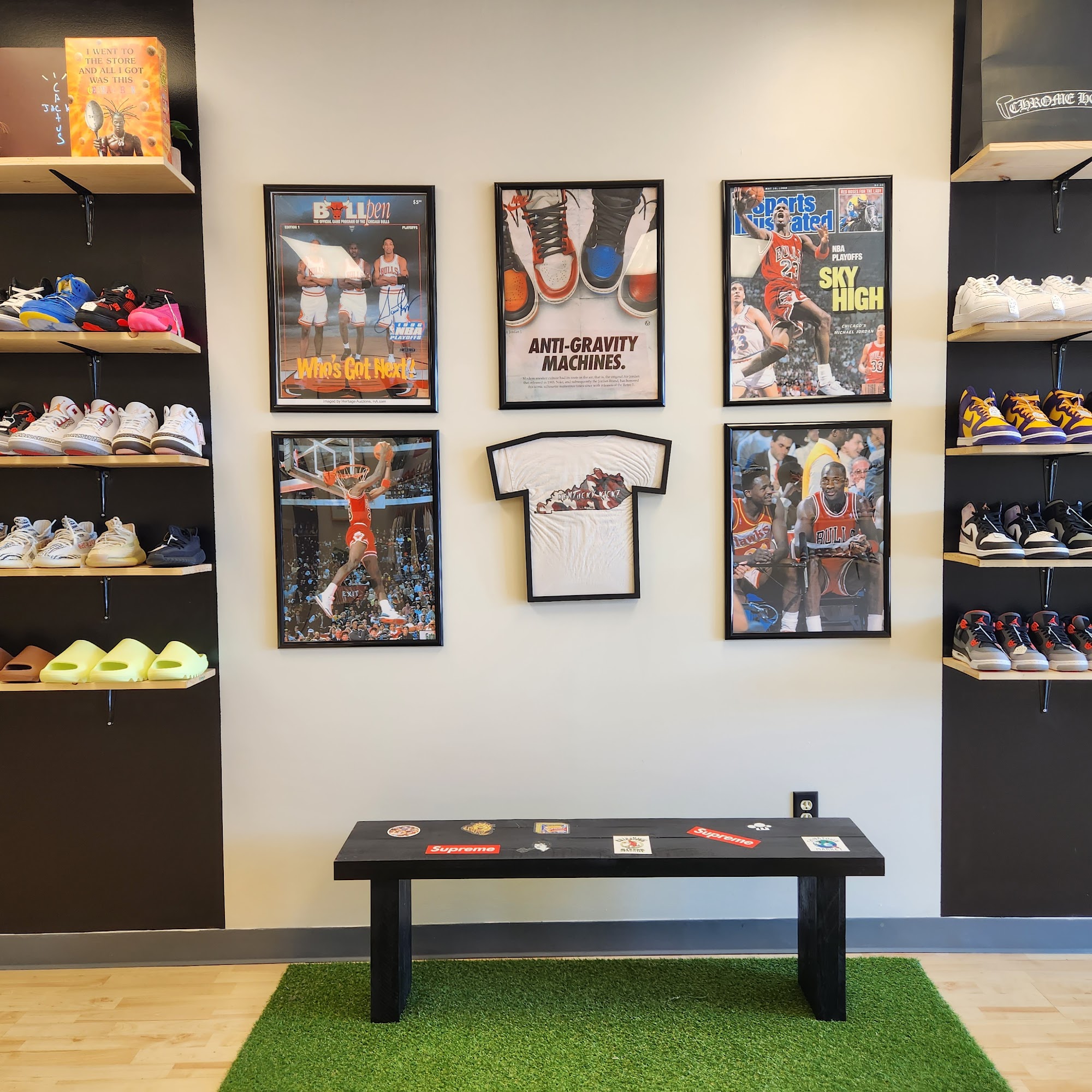 Kentucky Kickz is your one-stop shop for in-style sneakers as well as streetwear clothing, located at 4793 Village Square Dr (Suite B) in Paducah, Kentucky. The store houses some of the most exclusive clothing and shoe brands, including favorites like Supreme, Vlone, Bape (or Bathing Ape), Yeezy, Jordans, Off White, and more. Customers praise the store's great selection, especially of retro Jordans, as well as the friendly staff and amazing vibes. Kentucky Kickz is a go-to destination for both local shoppers and those passing through Paducah.
