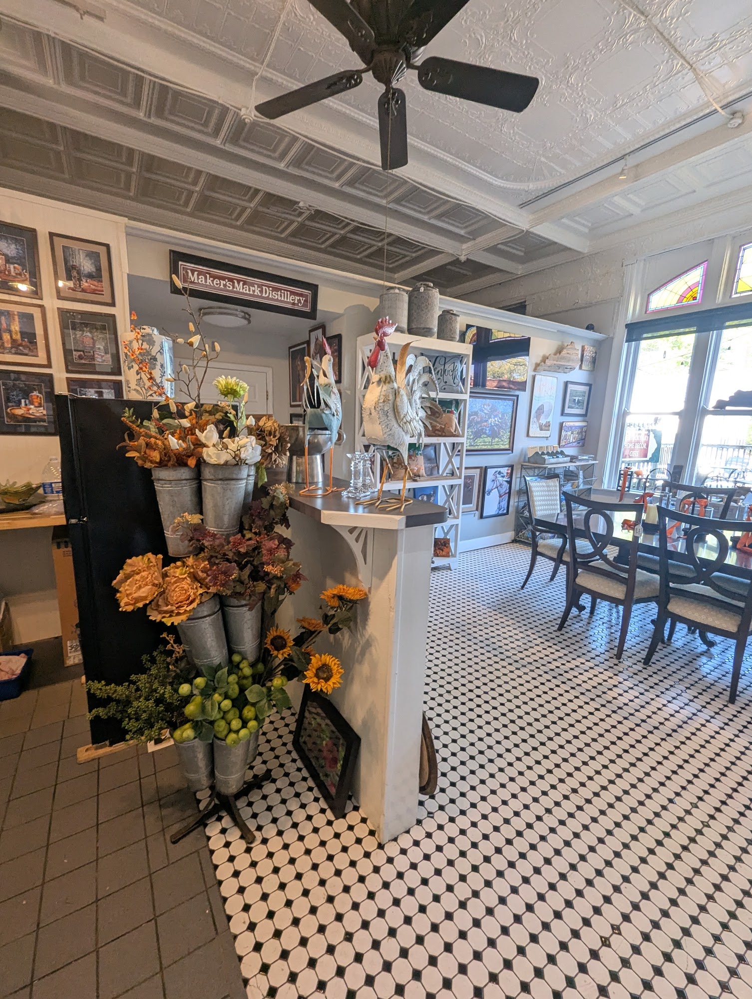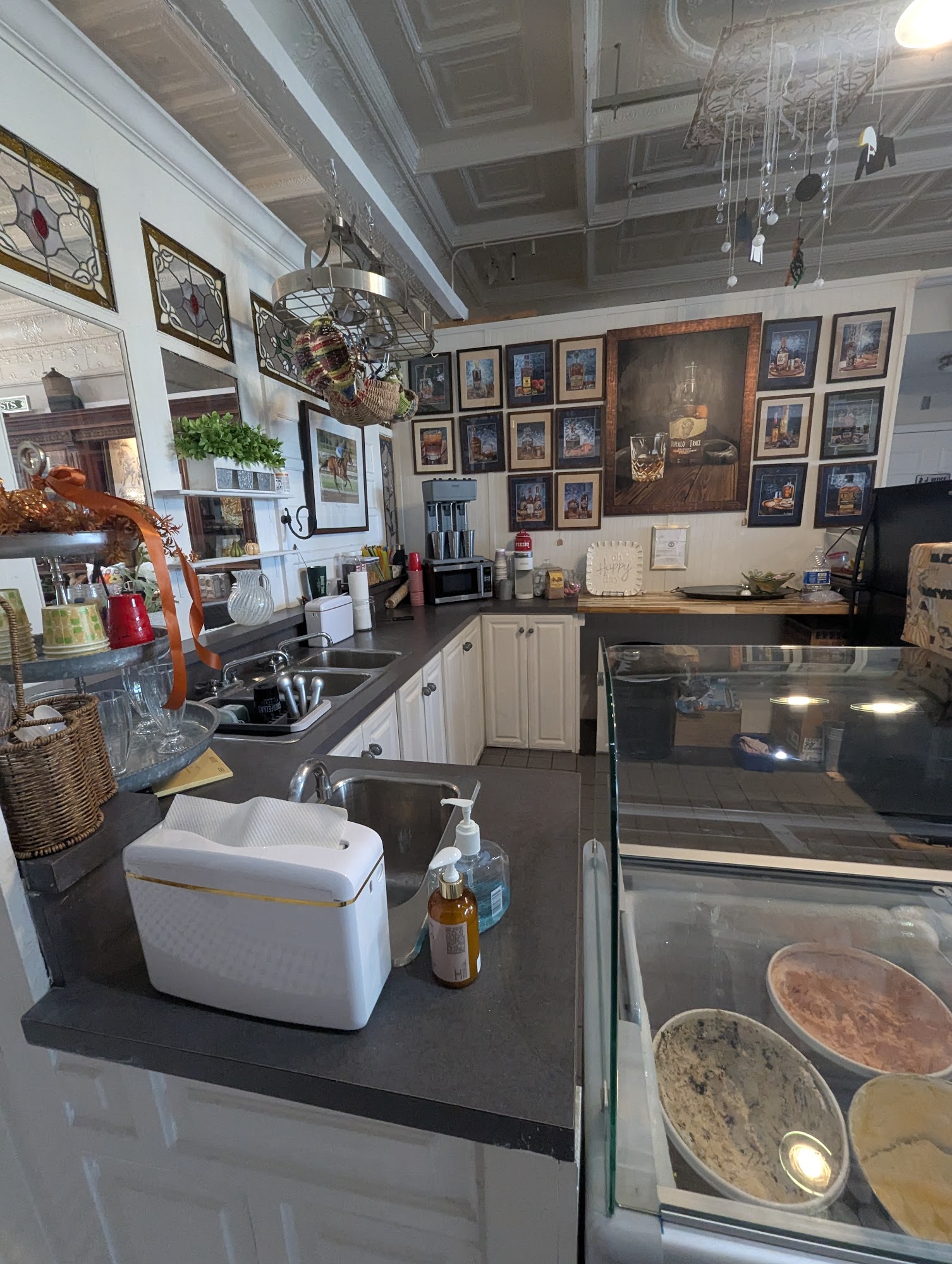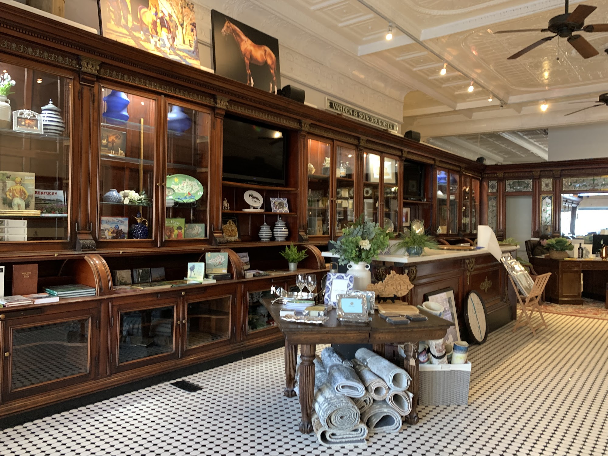 The prettiest store in an old pharmacy building with all the best architectural parts preserved. Find art, souvenir, and ice cream at All Above Kentucky