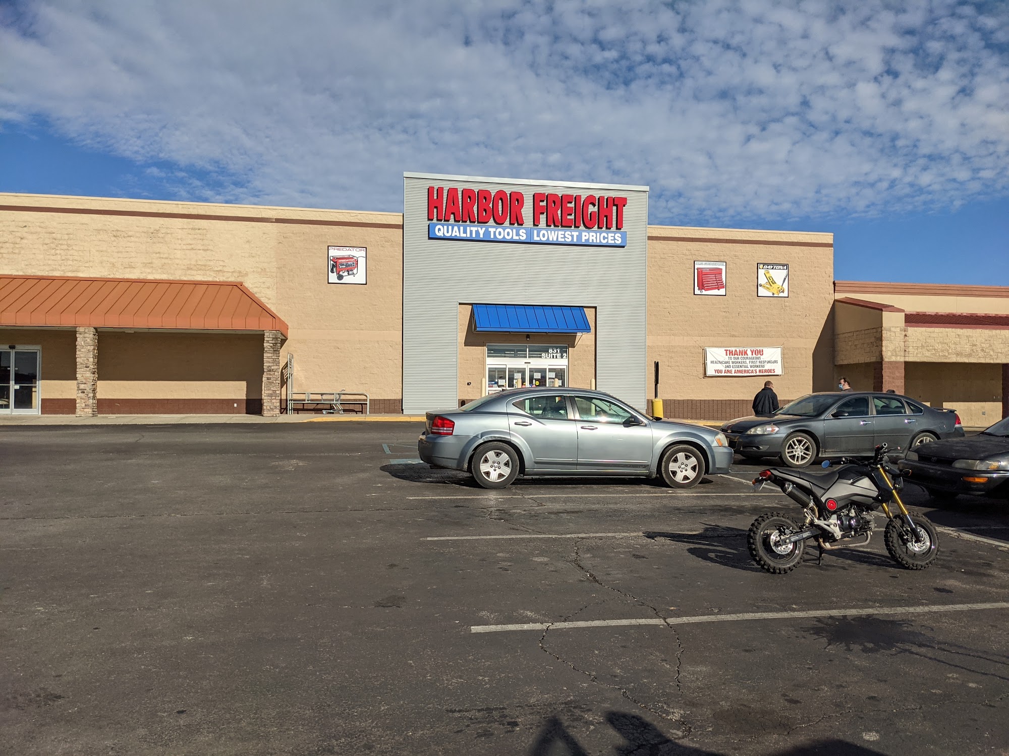 Small shopping center with retailers and restaurants.