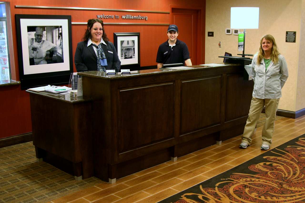 Hampton Inn Williamsburg offers a friendly and welcoming atmosphere with clean rooms and helpful staff. Guests appreciate the good location, close to the interstate, restaurants, Walmart, and gas stations within walking distance, making it convenient for travelers. The hotel is also pet-friendly and near popular attractions like the waterpark, providing good value for families and visitors. The complimentary breakfast features a variety of options, though some find it not as outstanding as other Hampton Inns. The parking lot is well-lit, ensuring safety and convenience. Guests often mention the friendly service, especially from staff members who go above and beyond, such as helping with minor needs or returning lost items. The hotel maintains a high standard of cleanliness and comfort, with some noting that the rooms are very clean and the overall stay comfortable. Minor issues include beds that are not the most comfortable and doors that slam, but these do not detract significantly from the positive experience. Overall, Hampton Inn Williamsburg is a reliable choice for a pleasant stay in a nice town.
