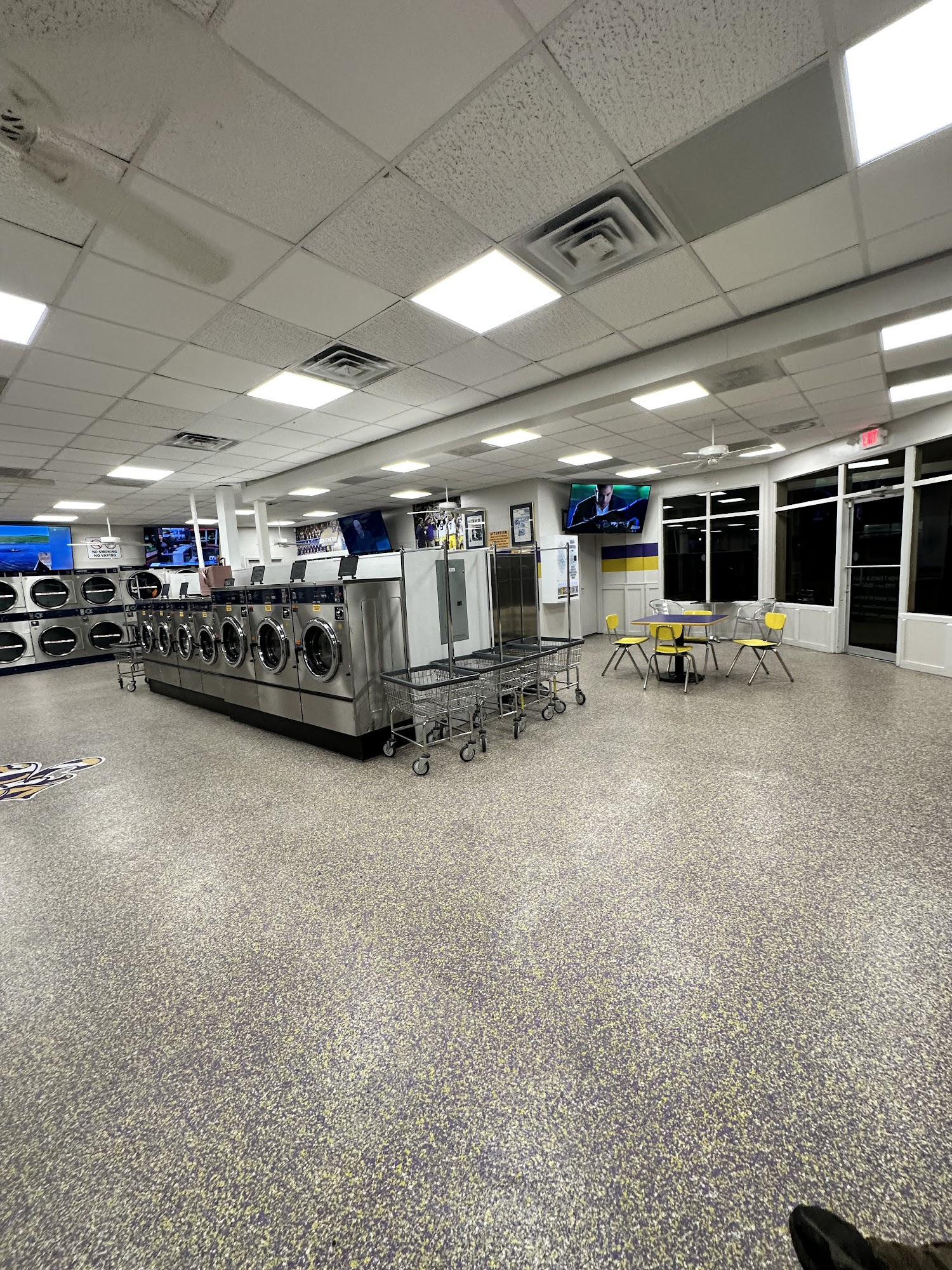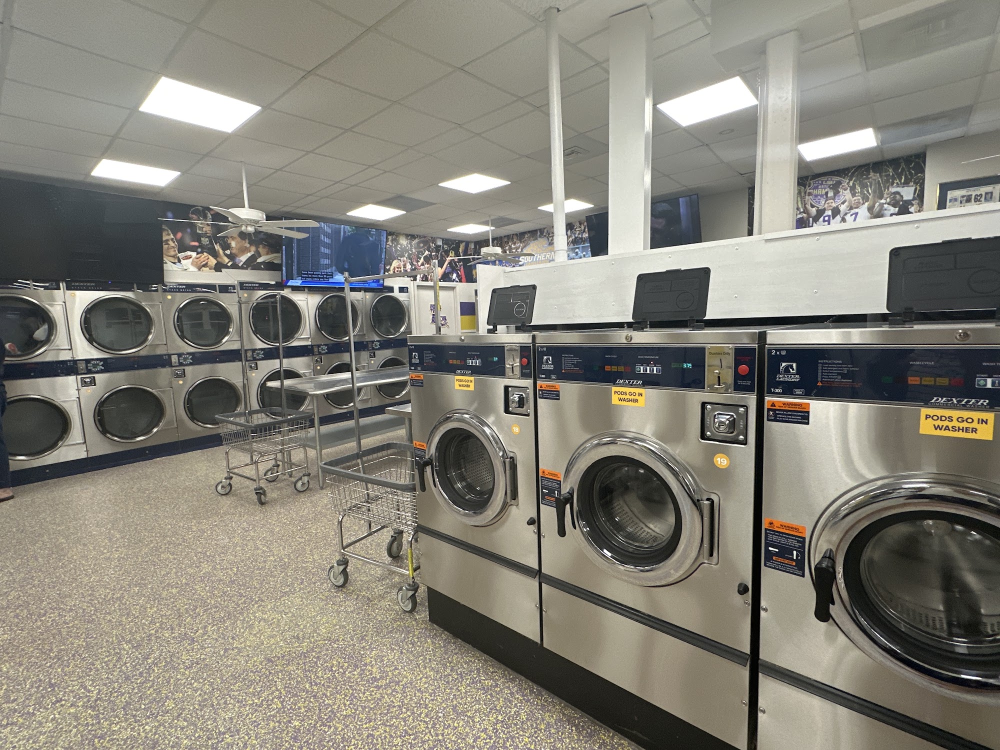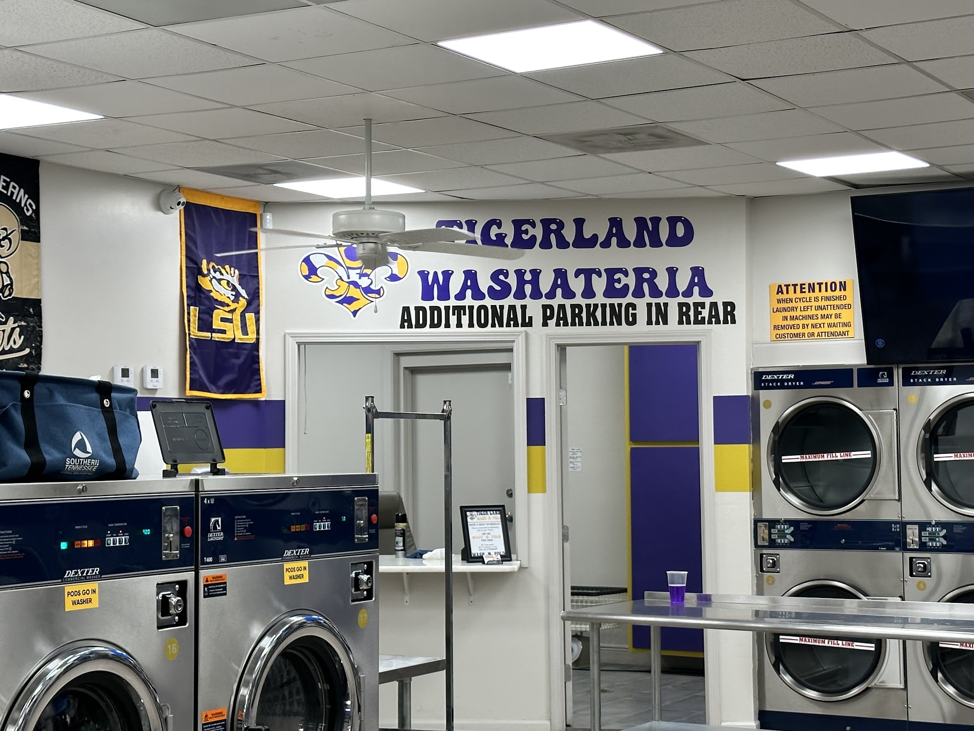Discover Tigerland Washateria, Baton Rouge's newest and largest laundromat, conveniently located just minutes from LSU. Boasting a spacious 3500 sq ft, our state-of-the-art facility is equipped with the latest washers and dryers, two restrooms, a change machine, and a bill breaker for your convenience. Enjoy complimentary WiFi and six large TVs while you handle your laundry needs. Stop by our Baton Rouge location today for a top-notch laundry experience!