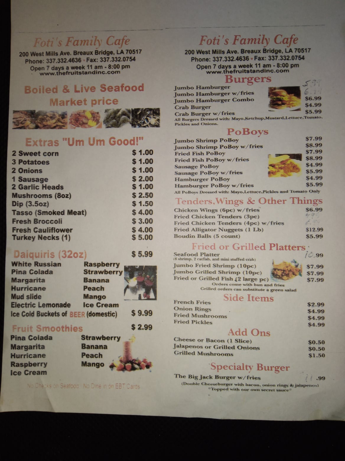 Fruit Stand is a great CAJUN place with a hometown feel. It offers fresh, good fruits and veggies, fresh produce, fresh pecans, and lots of local seafood like crabs and live crawfish. The business serves incredible food and adult and kids drinks. The food is always exceptional, fresh, and plentiful. The people are friendly, helpful, and not lazy, making the place very inviting. They offer recycling, take EBT, and sell plants and trees for a garden. Customers can also sell pecans for a fair price. It is always fresh and friendly.