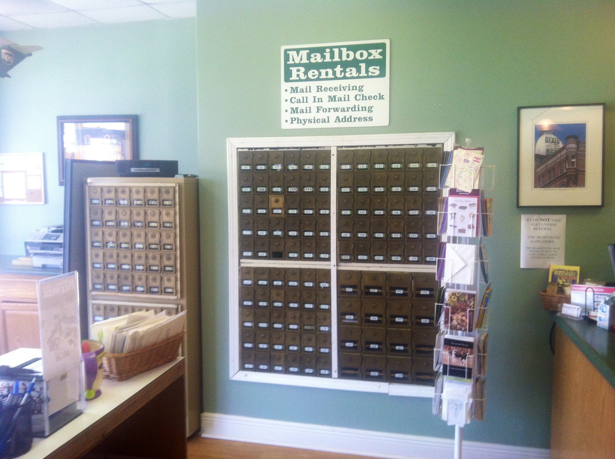 Notary available from 10 am - 12 noon for Monday-Saturday and 3 pm - 5 pm for Monday-Thursday. Mailbox rental with street address advantage. One stop shop for your shipping needs including USPS, FedEx, UPS, DHL services. Faxing, light copying & scanning services available.