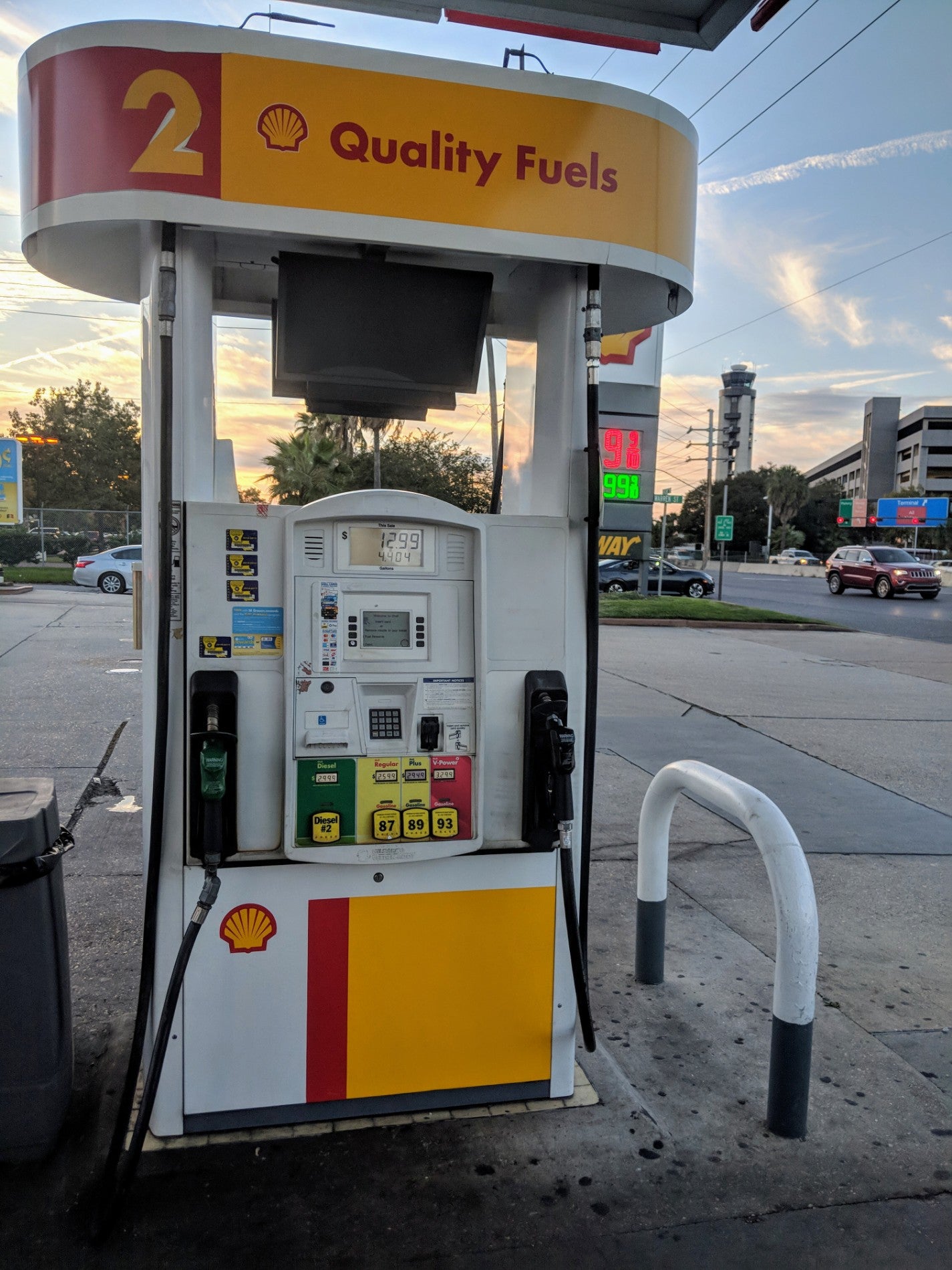 Closest to the car rental center... 50ยข per gallon more expensive. Yeah, they know they have you...