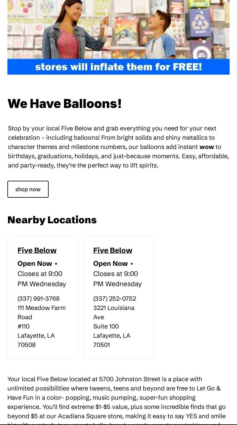 Five Below - 111 Meadow Farm Dr #110, Lafayette
