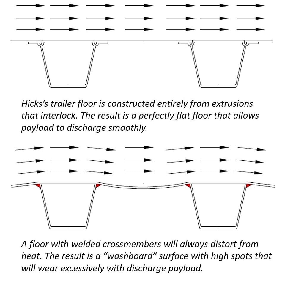 The Hicks family has been building dump trailers that serve the aggregate industry for over 70 years. We are a manufacturer of a revolutionary, patented, weld-free aluminum dump body, frameless, and frametype trailer design for hauling sand, gravel, dirt, asphalt, grain, ash, and more. Our lightweight, modular design boosts payload, redefines strength and durability, and reduces maintenance costs and downtime.