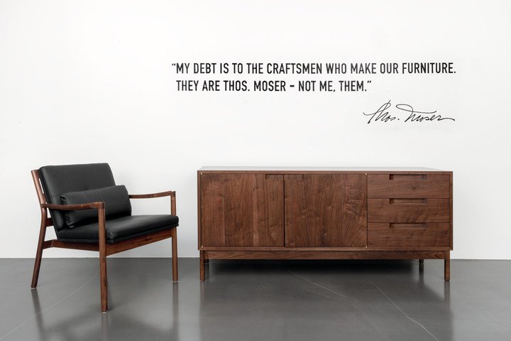 Thos. Moser was founded more than 50 years ago with the intent of restoring the lost art of making furniture well. Today there are some 70 men and women in our workshop who continue to craft pieces the same way we did at the beginning: one piece, one craftsman, one signature. We rely on sustainable North American hardwoods, traditional joinery executed by hand and individual workmanship. We are guided by our mission to build furniture that celebrates the natural beauty of wood; is of simple, unadorned, graceful lines; and is crafted for a long useful life.