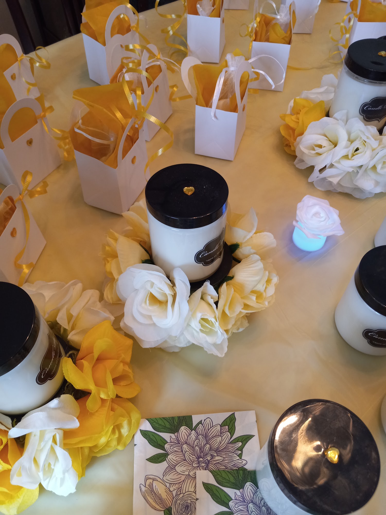 We sell all natural soy candles with over 55 different scents. We do private candle parties and wedding events. We have designer on staff to meet all your designer needs for your home party or special event. Leave a message or text for a consultation or questions about the candles or your business needs. Thank you.