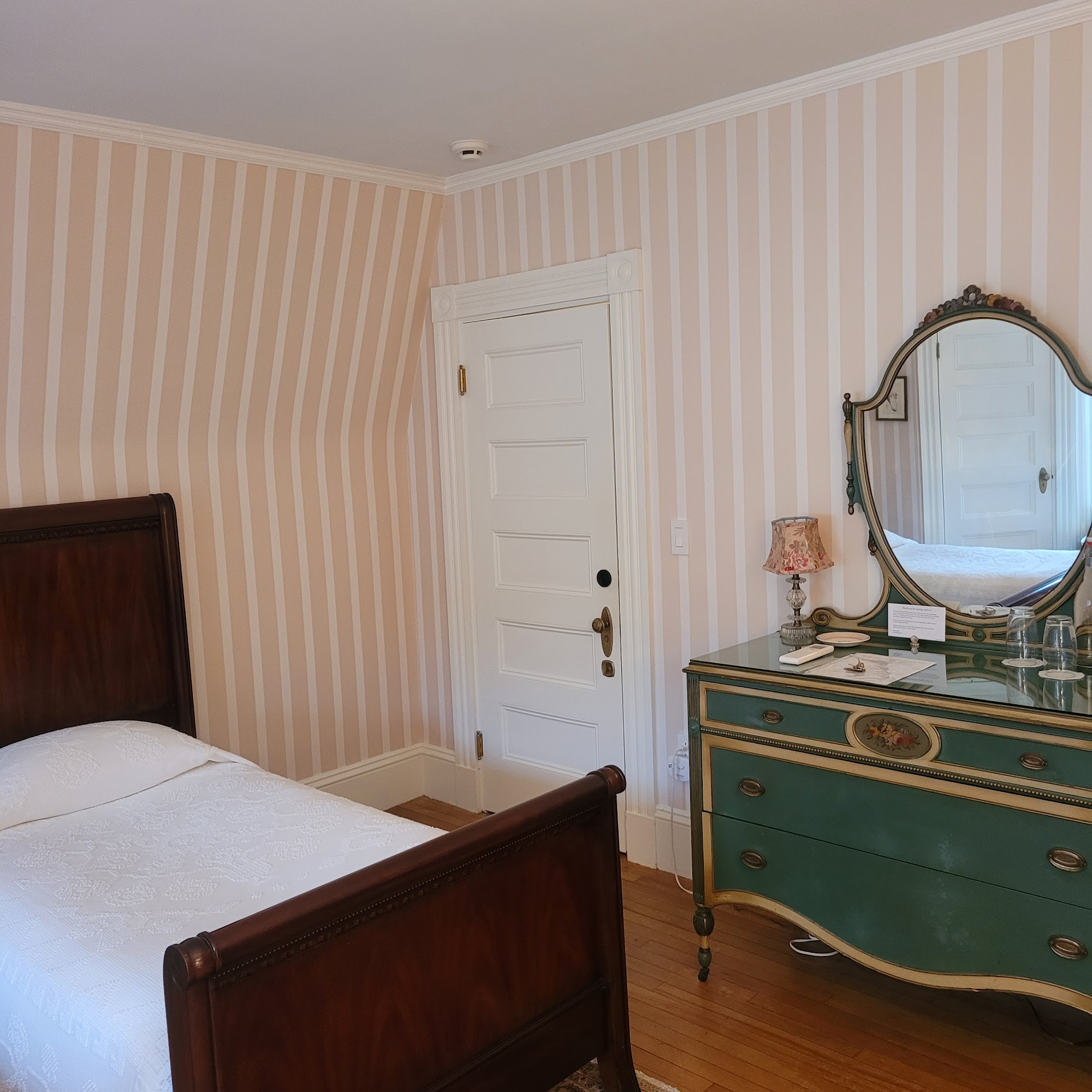 The Belmont Inn is a quiet and quaint bed and breakfast on a quaint street in Camden. It is perfectly situated just a few blocks from the waterfront and downtown, with everything within a short walking distance. The location is an ideal and perfect base to explore the town, local sightseeing attractions, great restaurants, and the incredible foliage. The inn itself is absolutely gorgeous, with charming decor and copious amounts of detail and charm at every turn. The common spaces and gardens are gorgeous. Guests describe the rooms as excellent, spacious, and comfortable, though some note they can be modest, small, and have limited outlets. The inn is extremely quiet at night. The warm hospitality is outstanding, with an engaging, charming, and wonderful host and staff who are accommodating and welcoming. Guests are treated more like family and friends with the utmost attention to a personal touch. Each morning features a fabulous and delicious homemade breakfast, with items like fresh fruit, yogurt, egg dishes, and exceptional homemade pastries. Overall, the Belmont Inn provides a spectacular, excellent, and lovely stay for a quaint and quiet getaway, highly recommended by its guests.
