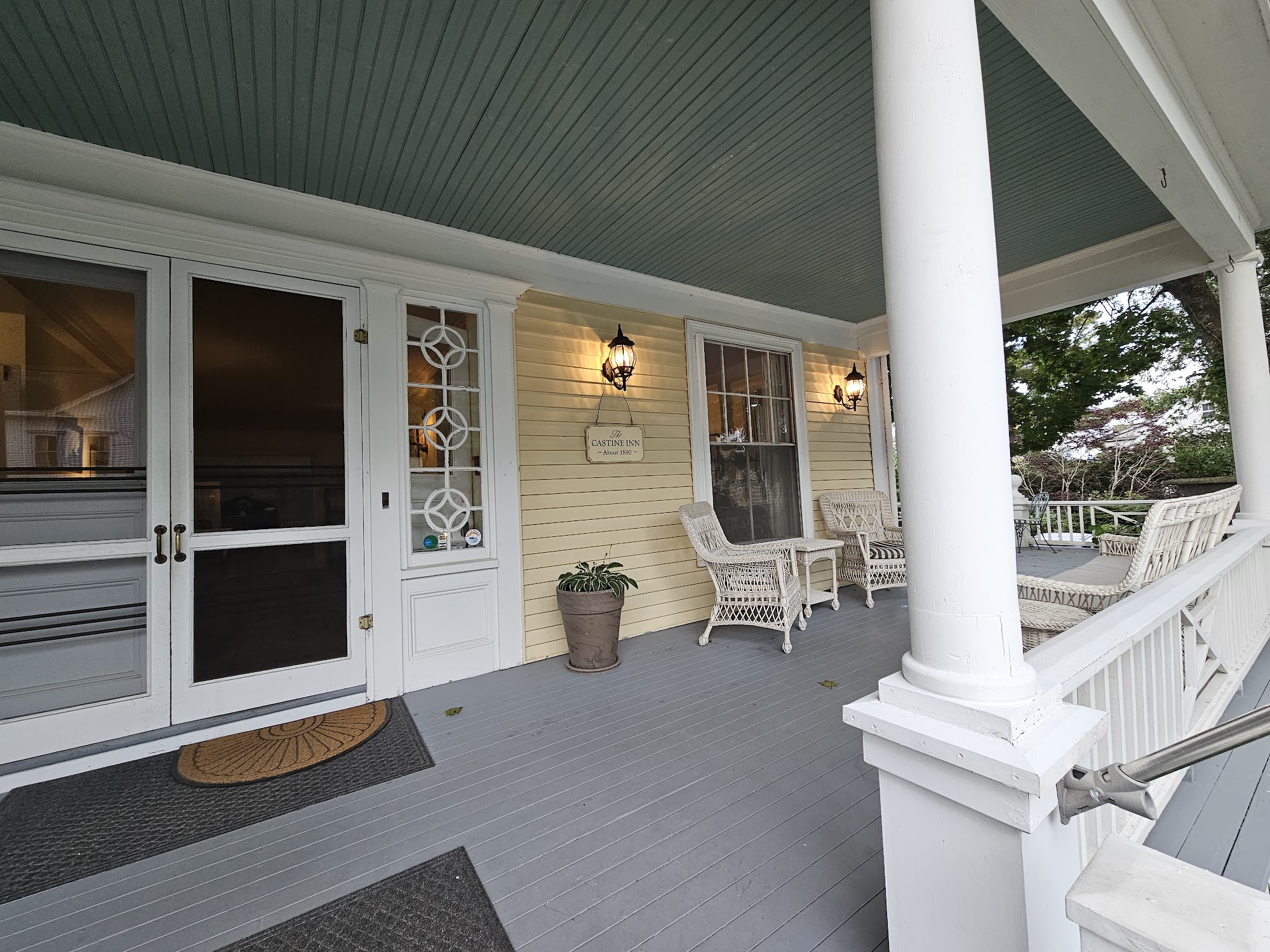 The Castine Inn is a charming, historic hotel located in the heart of Castine, Maine. This 100-year-old inn offers a warm and welcoming atmosphere with tastefully decorated public rooms, including a dining area adorned with a local artist’s mural and a large wrap-around porch with tables, sun umbrellas, and views of a beautiful garden filled with boxwood and day lilies. The inn’s garden provides a peaceful space for walking, meditation, or yoga. Guests consistently praise the cleanliness of the rooms and the delicious, homemade breakfast featuring pastries, scones, eggs, and great coffee. The inn’s staff, including friendly innkeepers and bartenders, are attentive, helpful, and create a feeling of being at home. The inn’s location is perfect for exploring on foot, with everything in downtown Castine within walking distance, including the harbor, marina, restaurants, shops, and the town green. Bikes are also available for guest use. The inn is ideal for those who enjoy old inns with character, historical architecture, and a quiet, relaxed environment. Guests often mention the welcoming hospitality, the opportunity to enjoy local sights, and the charm of staying in a historic setting. While some rooms, like the third-floor room without an elevator, may require a bit of effort to access, the overall experience is memorable and authentic. Many visitors express a desire to return, appreciating the inn’s unique atmosphere, the friendly staff, and the beauty of Castine.
