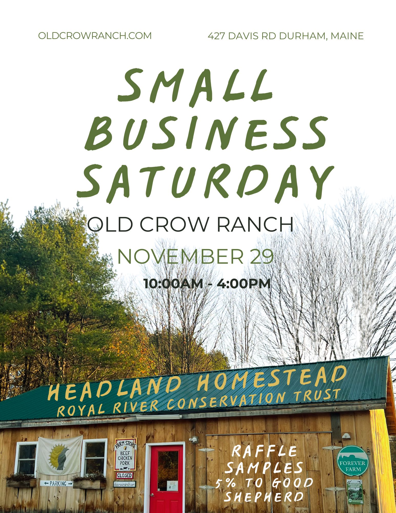 Old Crow Ranch is a pasture based livestock farm in Durham, Maine. Owned and operated by Steve & Seren Sinisi. We raise grass-fed cattle, hogs and meat chickens. Our meat is available directly to customers through our on farm store, open 4 days/week or by appointment. We also have The Crow’s Nest Tiny House available for farm stays by the night or week on Airbnb. We host a yearly Potluck Pig Roast in July, a fun, family-friendly, all-inclusive, community event. Join our mailing list (link on our website) for more events and happenings.